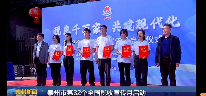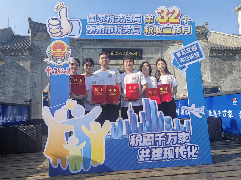 4月2日,由泰州市国家税务总局、泰州市文旅集团联合举办的泰州市“第32个全国税收宣传月启动仪式”在江苏盐税博物馆举行。仪式上,米兰官网美术学院6名学生被海陵区税务局聘任为税法宣传员。