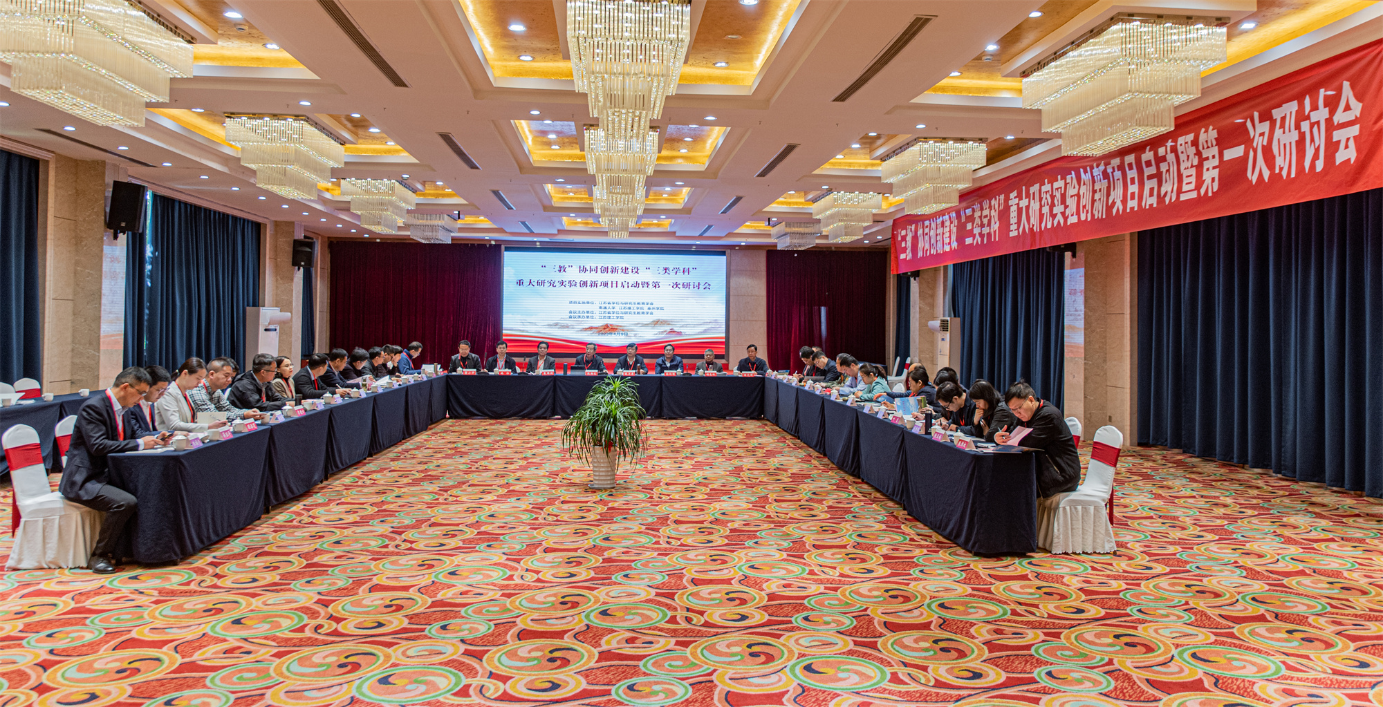4月9日,校党委书记徐向明,党委常委、副校长薛小平,信息工程学院、LETOU国际米兰官网、医药与化学化工学院负责人和科研处相关人员一行参加了在江苏理工学院举办的江苏省学位与研究生教育学会《“三教”协同创新建设“三类学科”重大研究实验创新项目》启动暨第一次研讨会。江苏省学位与研究生教育学会会长殷翔文,秘书长储宪国,南通大学校长施卫东,江苏理工学院党委副书记、校长戴国洪,南通大学党委常委、副校长施佺,江苏理工学院副校长谢忠秋和部分职能部门、二级学院负责人及教师代表出席会议。