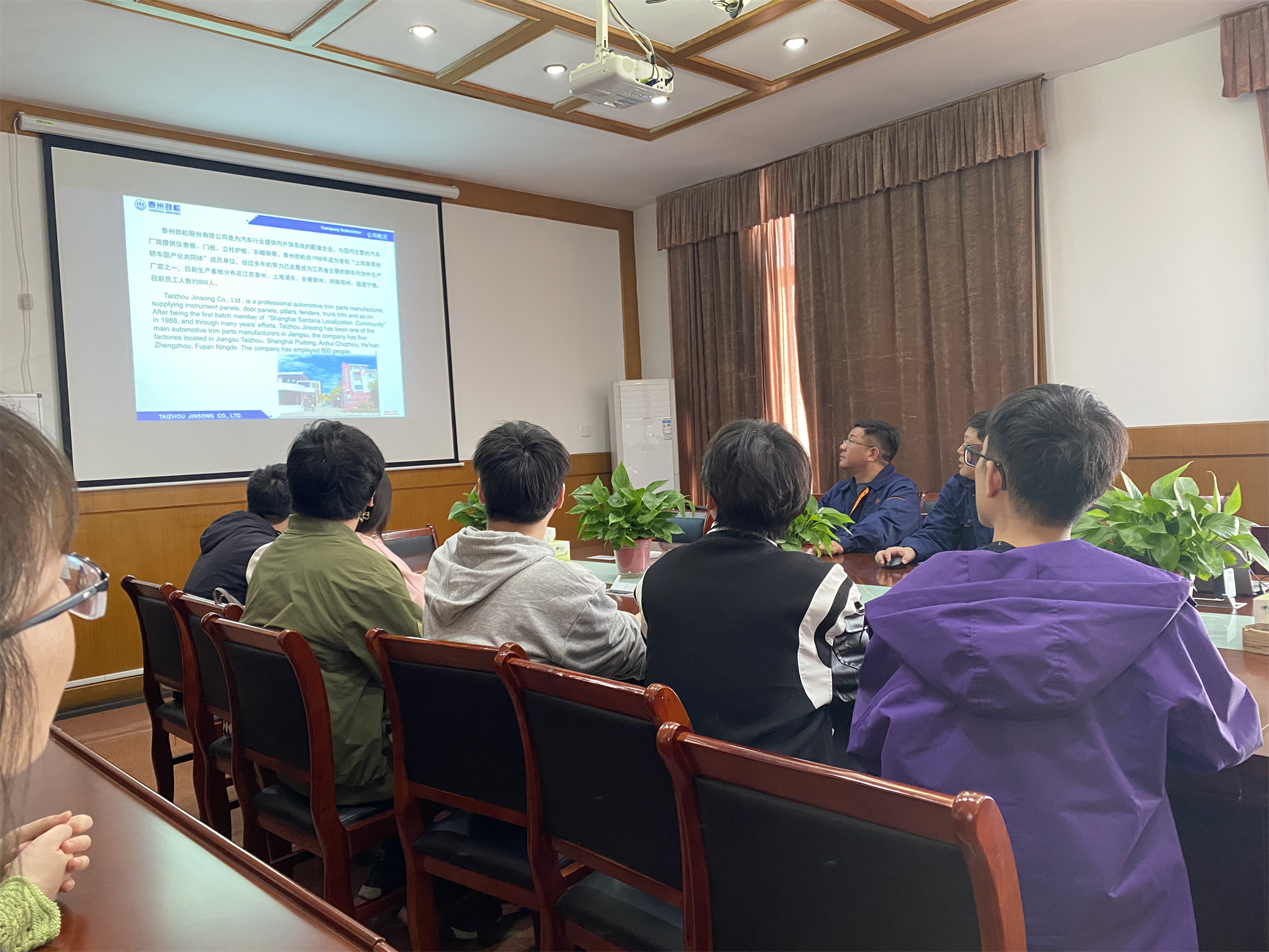 劲松股份人力资源部负责人王芳带领机电工程学院师生一行参观了公司的装配车间、注塑车间、设计工程部、质检实验室。公司总经理王华在座谈会上介绍了公司发展概况、主要客户、质量体系、制造技术和产品技术以及公司岗位需求,解答了学生岗位职责内容、职业发展前景、薪资待遇等方面的问题。