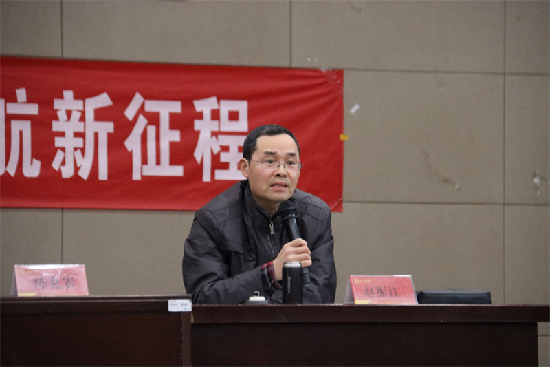 赵振江代表学院领导班子做总结发言,期望大家重视毕业条件、认清就业形势、树立就业信心、端正就业观念,要求全体毕业生离校前遵守校纪校规,树立榜样形象,展现良好素质,为自己、学校、社会交一份满意的答卷,给大学生活画上圆满的句号。