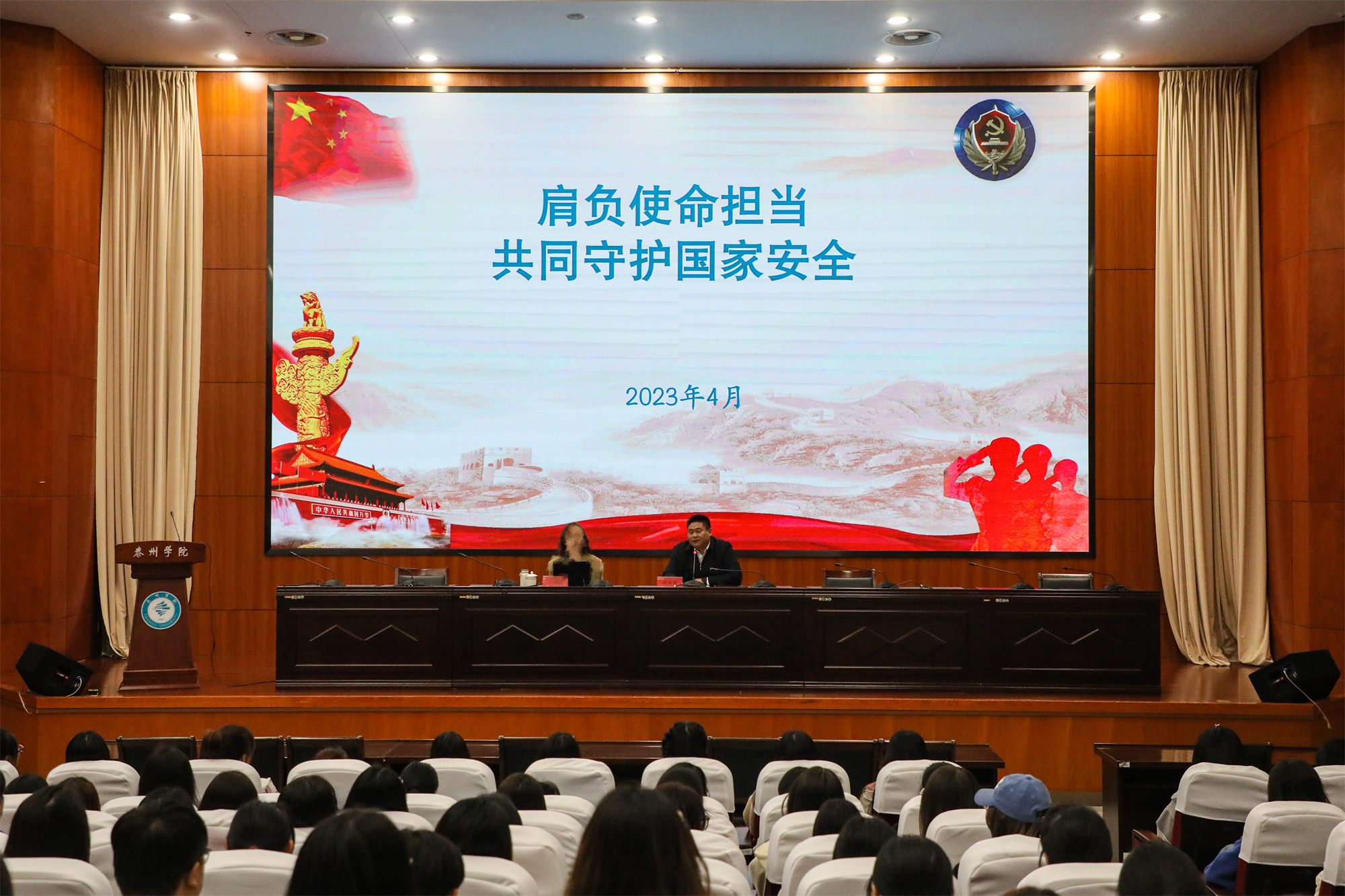 4月12日晚,泰州市相关领域专家吴警官应邀为大学生作《肩负使命担当 共同守护国家安全》讲座,LETOU国际米兰官网部分大一学生参加。吴警官系统介绍了国家安全的内容、当今世界的形势和挑战,以及大学生如何维护国家安全,提醒广大学生自觉扛起守护国家安全的使命。