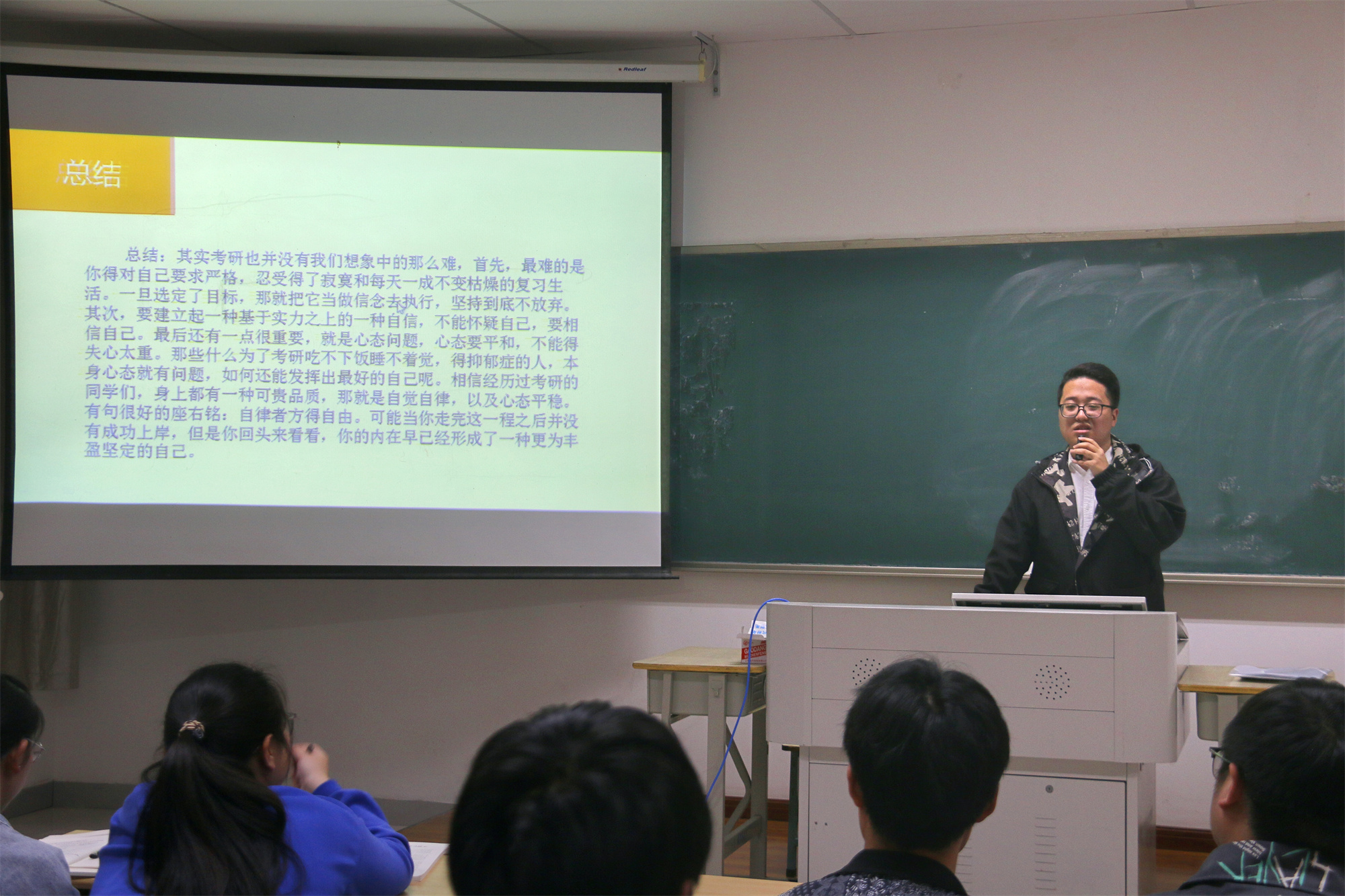 此次考研经验分享会的开展,进一步提高了同学们的考研热情,为同学们提供考研方向和技巧,引导大家以更加积极良好的心态迎接考研。