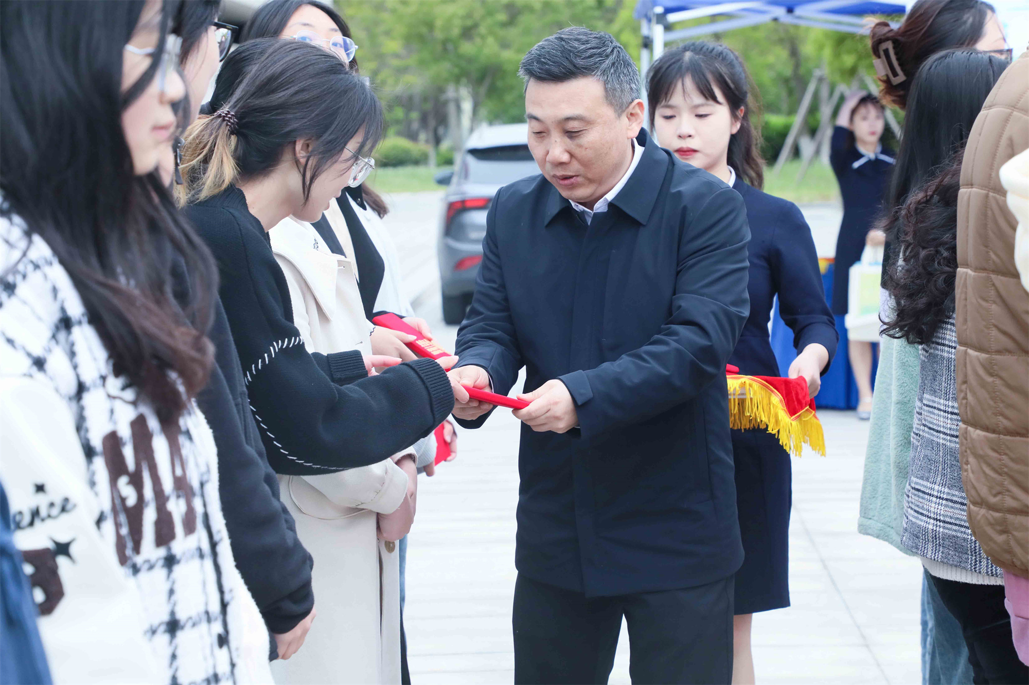 季赛为户外拓展阅读活动的获奖者颁奖并勉励他们要坚持阅读,把读书当成一种生活态度、一种精神追求,在读书中汲取知识、享受乐趣、感悟人生、获得成长。