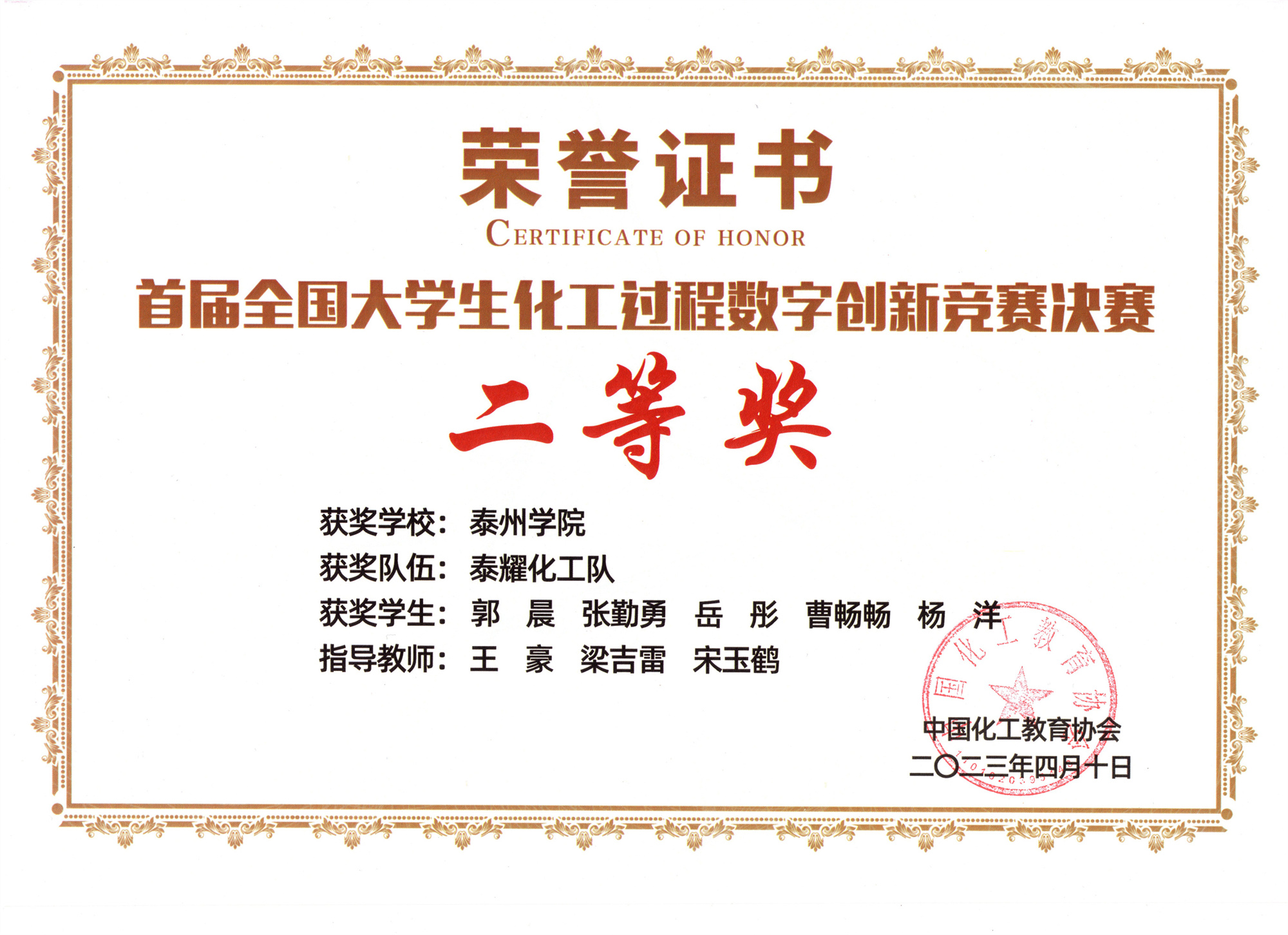 近日,米兰官网参赛队伍“泰耀化工队”获得首届全国大学生化工过程数字创新竞赛总决赛本科生组二等奖。