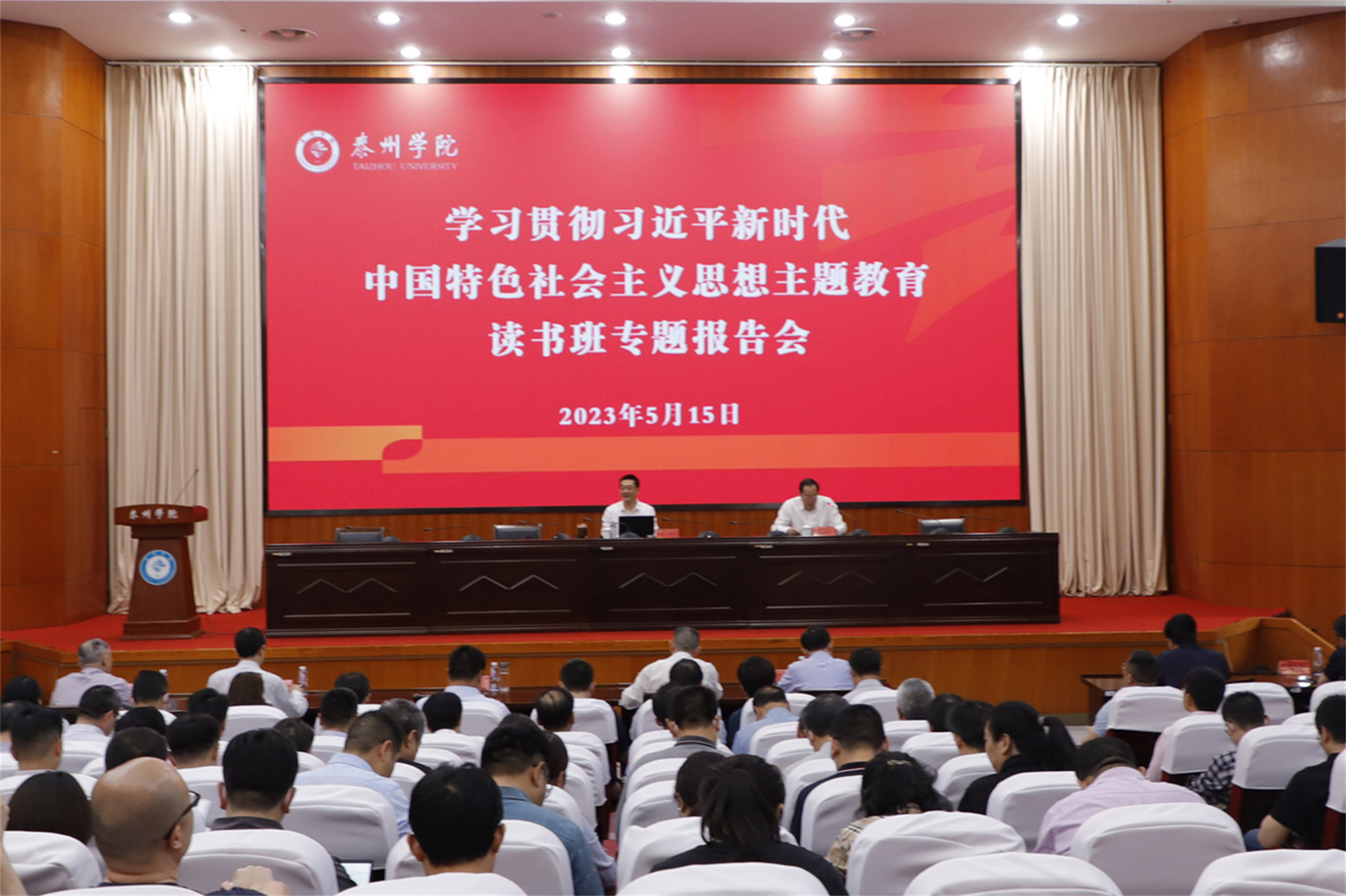 5月15日,米兰官网在胡瑗讲堂组织召开学习贯彻习近平新时代中国特色社会主义思想主题教育读书班专题报告会。学校邀请到中共泰州市委党校常务副校长高宏同志作主题为“以新发展理念引领高质量发展”的专题辅导报告。校党委书记徐向明主持报告会,全体校领导、中层干部参加报告会。