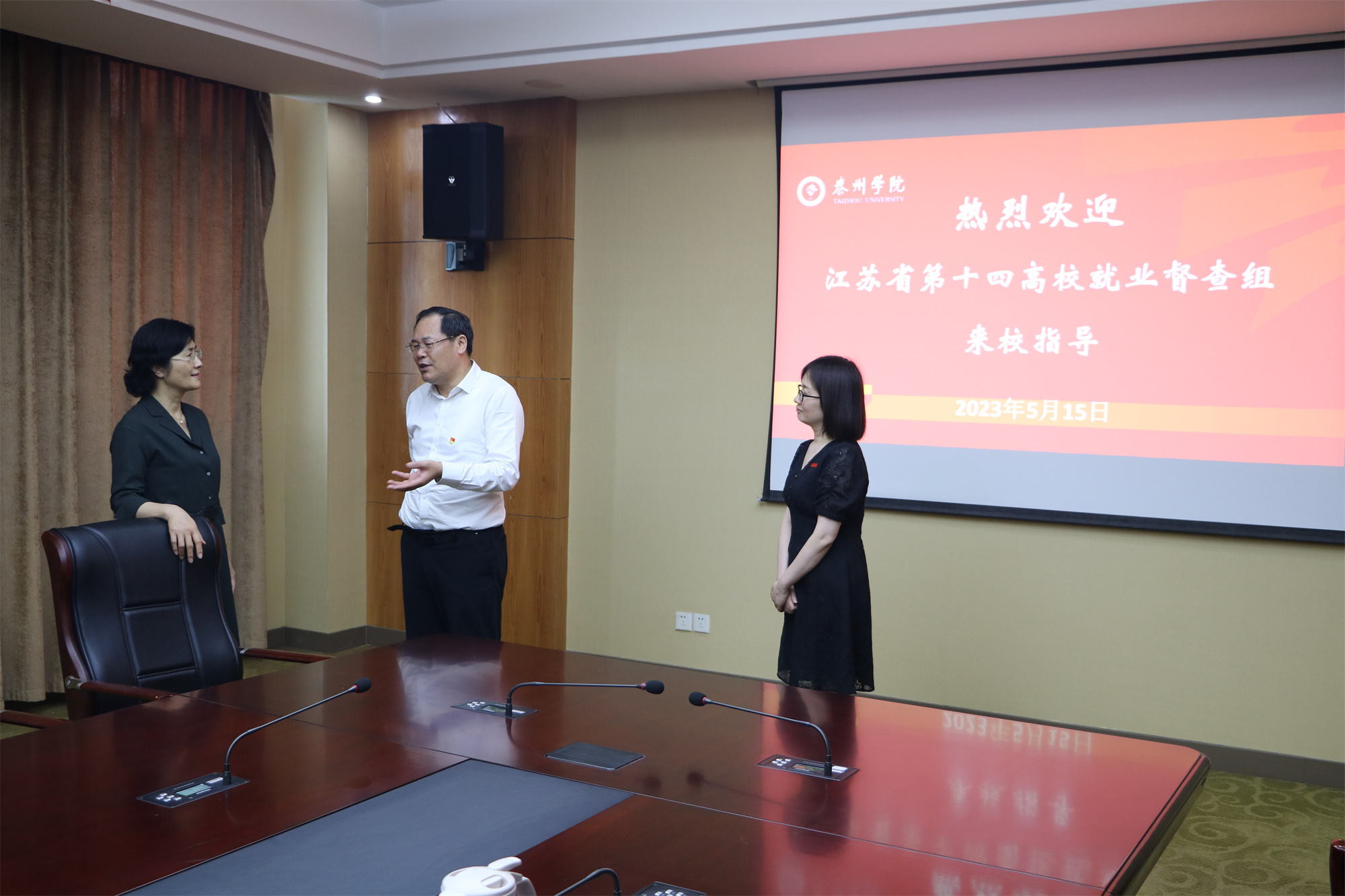5月15日下午,江苏省2023届普通高校毕业生就业工作专项督导第十四督查组来米兰官网实地督查就业工作。省督学、省教育厅原二级巡视员赵晓群担任督查组组长,江苏理工学院学生工作处处长王振伟、江苏农林职业技术学院学生工作处处长管斌、省高校招生就业指导服务中心代理服务部部长何菁担任组员。校党委书记徐向明,校党委副书记、校长季赛,校党委常委、副校长卜慧芬陪同督导检查。