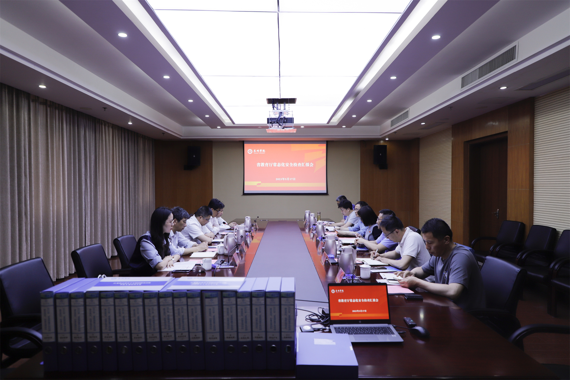 卜慧芬对检查组的到来表示欢迎,从学校概况、自查情况、亮点工作、存在问题等四个方面汇报了学校安全稳定工作开展的情况。随后检查组查看了安全工作台账,实地检查了监控中心、校门、危化品库房、科研实验室、心理健康发展中心、图书馆中心机房和监控机房、新食堂、学生宿舍等重点部位。