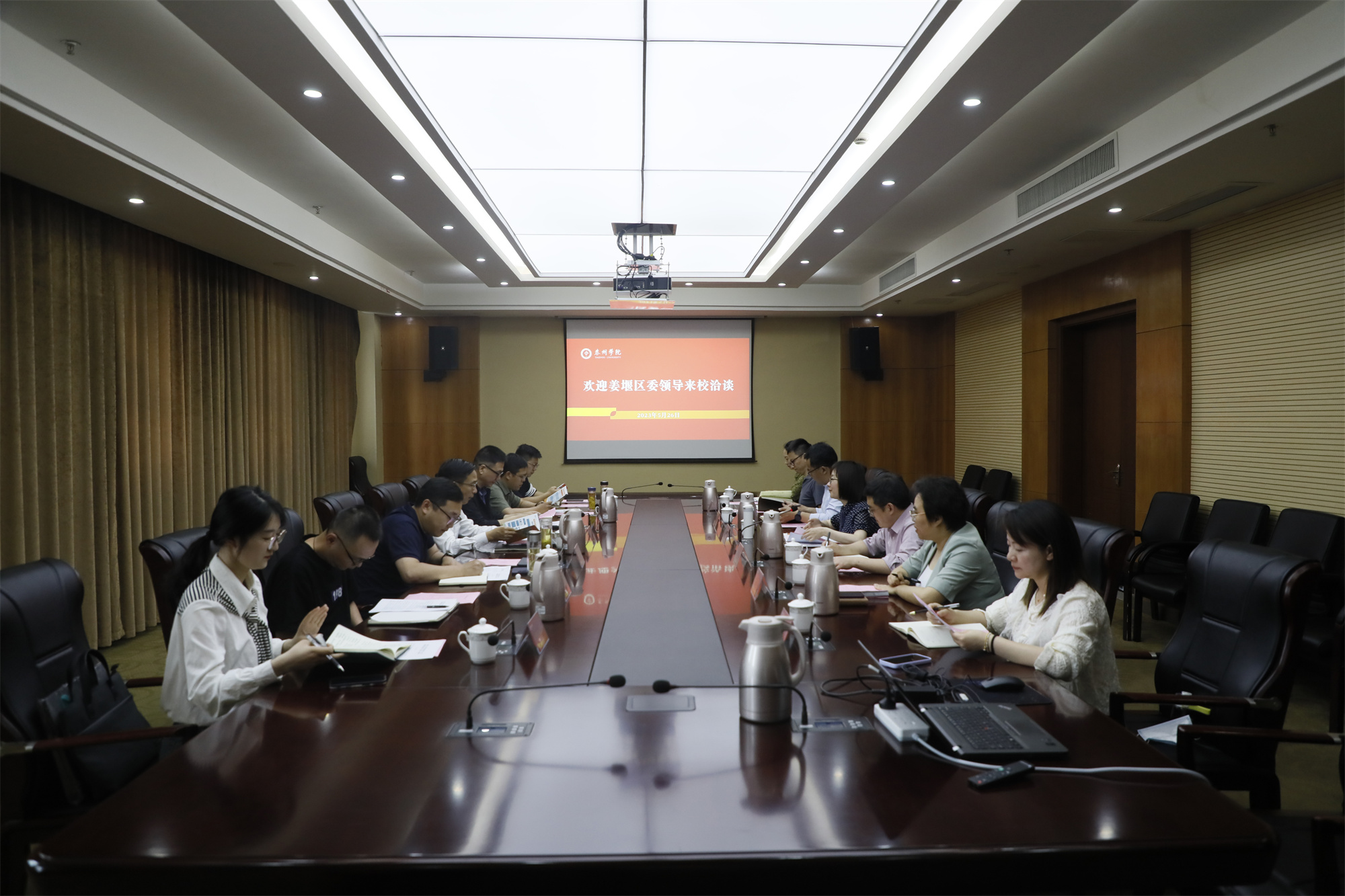 为进一步推动地方政府与高校的沟通合作,进一步提高驻泰高校毕业生“留泰率”。5月26日上午,姜堰区与LETOU国际米兰官网“青堰”友好城建设对接会在米兰官网D1605会议室召开。姜堰区委组织部副部长、老干部局局长陈玉、区科技局副局长陆勇斌、区委党建办副主任李俊、团区委副书记孙鹏飞出席会议。校党委常委、副校长卜慧芬,组织部、科研处、学生工作处、团委相关负责人参加会议。