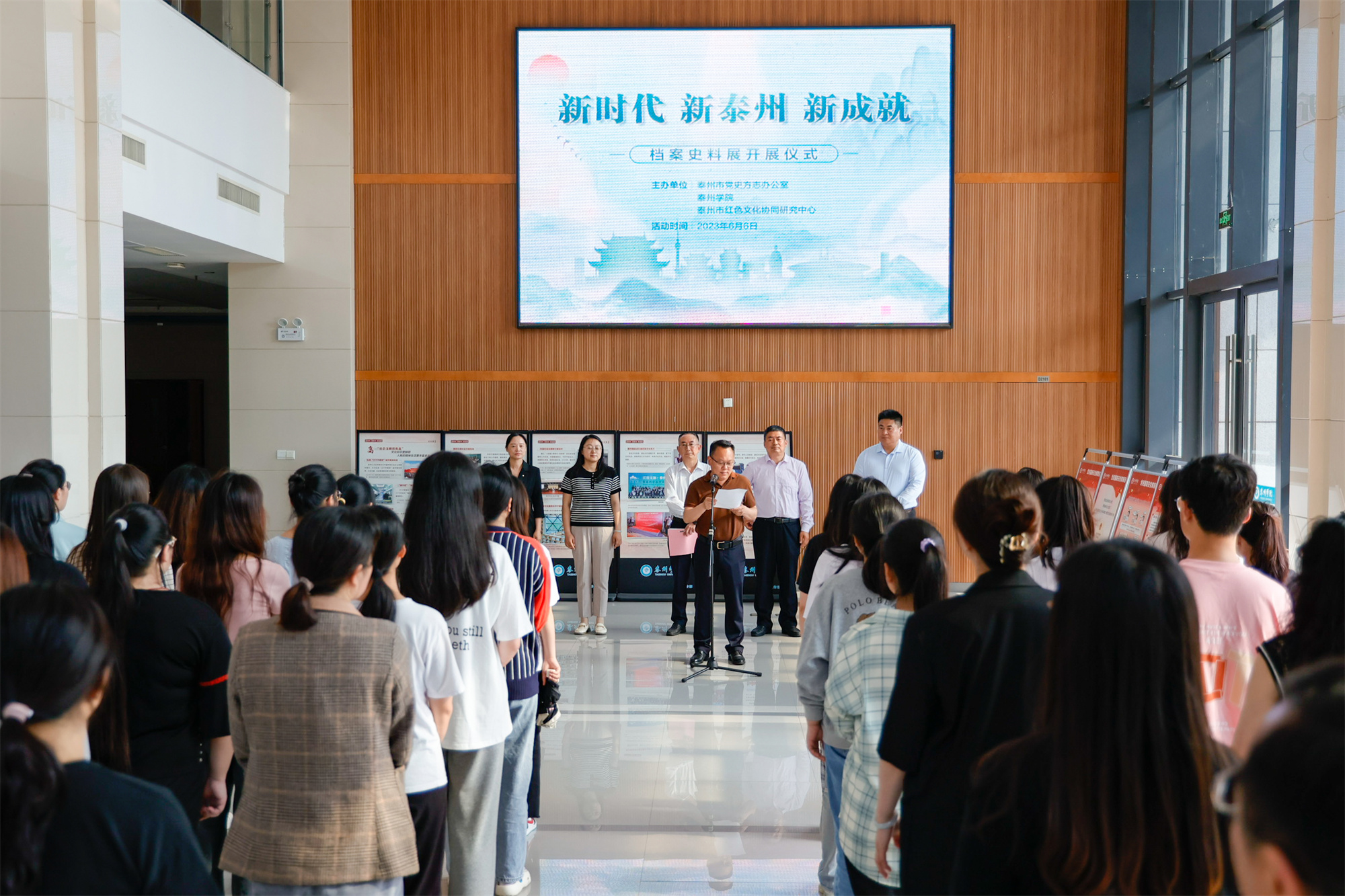 在全党深入学习贯彻落实党的二十大精神、扎实开展学习贯彻习近平新时代中国特色社会主义思想主题教育的关键时刻,在第十六个“6·9”国际档案日即将来临之际,6月6日下午,由泰州市党史方志办公室、泰州市红色文化协同研究中心和米兰官网联合主办的“新时代新泰州新成就”档案史料展开展仪式在米兰官网行政楼一楼大厅顺利举行。泰州市党史方志办公室副主任申万霞,米兰官网党委副书记、副校长王美林出席仪式,仪式由校党委常委、宣传部部长魏小星主持。