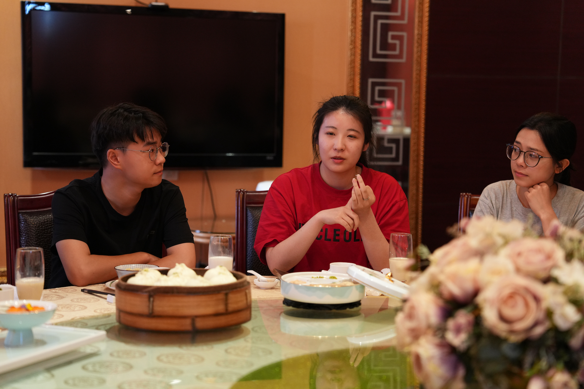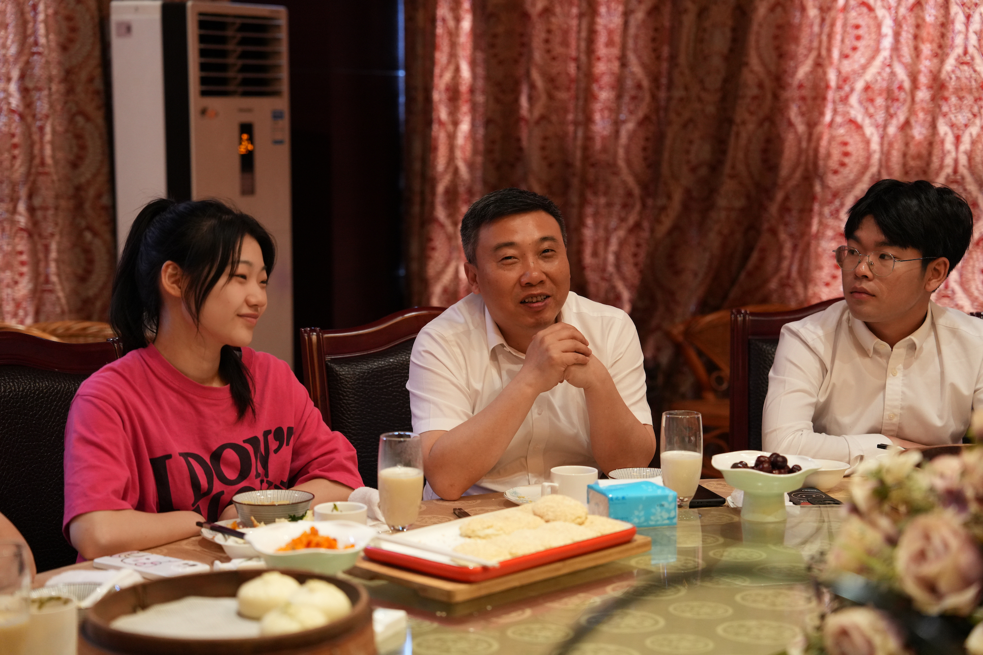 品尝早茶的香味。泰州早茶历史悠久,已经成为泰州的城市名片。徐向明亲切地询问各位同学四年在泰州有没有尝过泰州早茶,感受这座城市的幸福。季赛、卜慧芬等老师热情地向身边的同学介绍每一种早茶种类,让大家尽情品尝、畅所欲言。热气腾腾的鱼汤面、品种多样的点心,让同学们胃口大开,在感受早茶香味的同时,拉近了与老师的距离。“大学四年,我吃过多次泰州早茶,但今天的早茶让我印象最深刻。毕业后,我想我会常回泰州、常回泰院,感受这座城市、这所学校带给我们的‘家’的温暖。”人文学院秘书学专业时延强同学激动地说道。