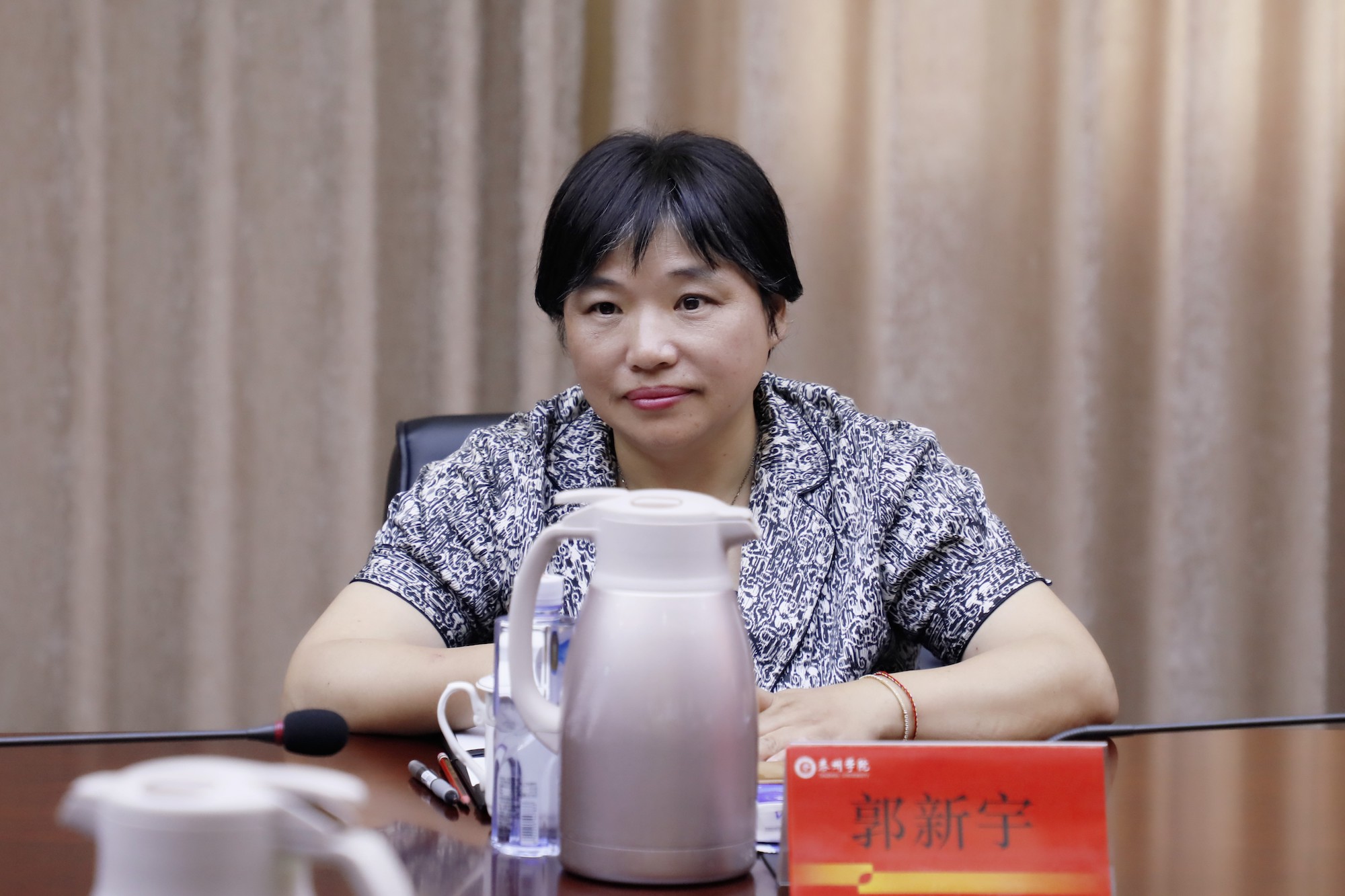 郭新宇认真听取了米兰官网基层教学组织建设的情况汇报,认为米兰官网高度重视基层教学组织建设,在教学制度建设、师资队伍建设、一流专业建设、课程与教材建设、条件保障建设等方面给予了大力支持,在教学研究、实践教学、创新创业、人才培养过程优化等方面发挥了基层教学组织的重要作用。她回顾了江苏省基层教学组织建设的历程,介绍了江苏省高校基层教学组织建设的顶层设计,分享了相关高校基层教学组织建设的成功经验,希望米兰官网高度重视基层教学组织的高质量发展,充分展现学校作为地方应用型本科高校基层组织建设的特色、亮点,进一步加强教学成果培育,不断提升基层教学组织建设水平。