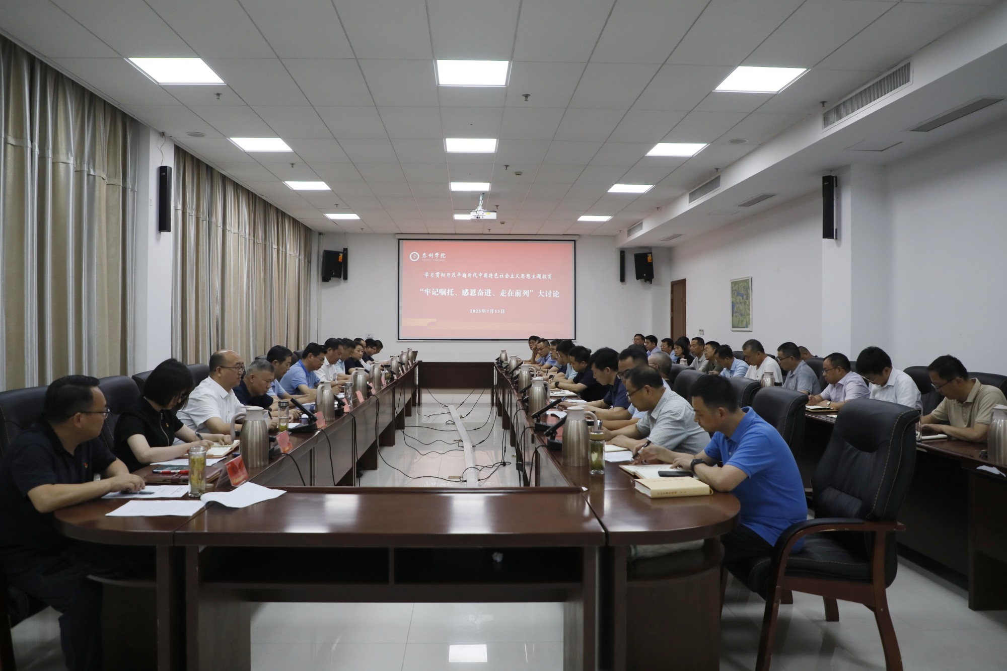 根据省委和学校主题教育工作总体安排,7月13日下午,米兰官网党委理论学习中心组在办公楼D2109会议室开展“牢记嘱托、感恩奋进、走在前列”大讨论。省委主题教育第二十三巡回指导组余祥明、刘静到会指导,学校党委理论学习中心组、主题教育读书班成员参加会议。校党委书记徐向明主持并讲话。