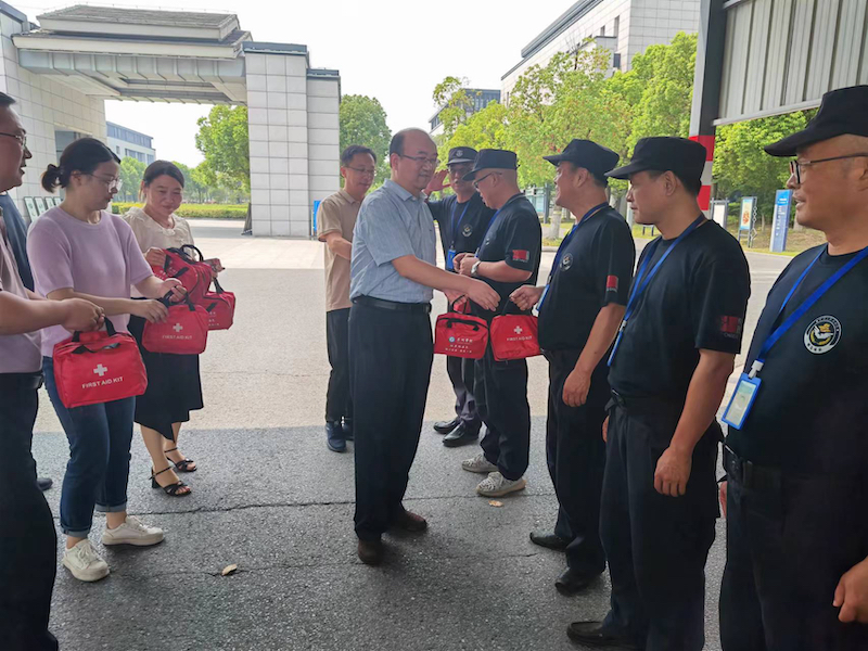 近期泰州持续高温,广大后勤工作人员坚守岗位,用严谨负责的态度和辛勤的汗水维护着校园的平稳、有序运转。8月11日上午,校党委常委、副校长沈荣鑫带队慰问坚守岗位、奋战在服务保障一线的后勤工作人员,并送上防暑降温慰问品。后勤管理处、高教投以及高教后勤负责人陪同慰问。