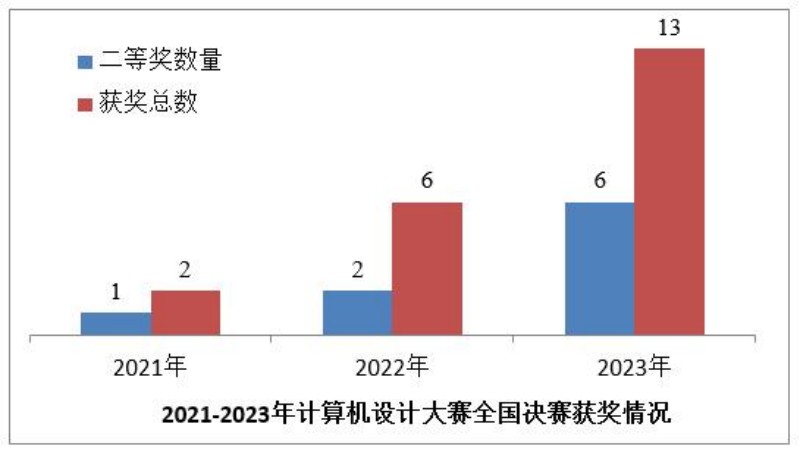 在近期结束的2023年(第16届)中国大学生计算机设计大赛全国决赛中,米兰官网获得全国二等奖6项、三等奖7项,获奖总数位居省内第8、全国第72名。较之于上一年,二等奖增加200%,获奖总数增加116.7%,竞赛获奖总体呈现了不断上升态势。