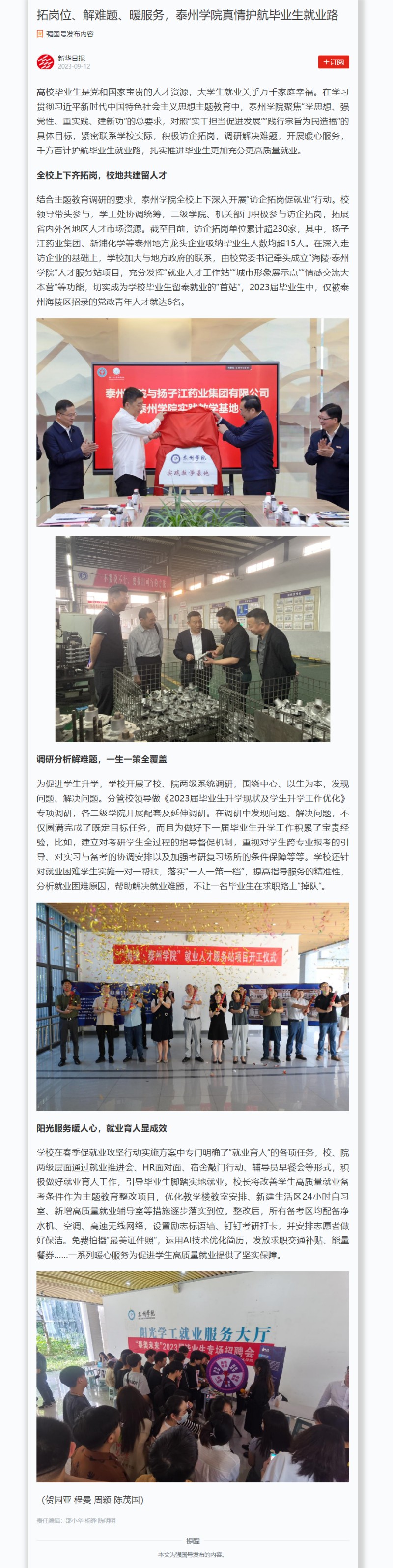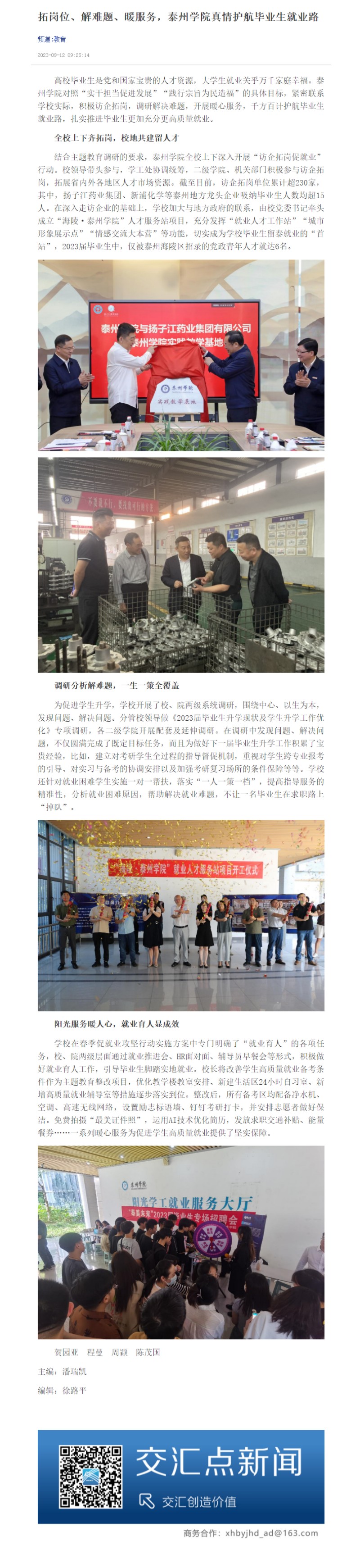 《学习强国》《交汇点新闻》《今日头条》2023年9月12日报道《拓岗位、解难题、暖服务,LETOU国际米兰官网真情护航毕业生就业路》。链接: