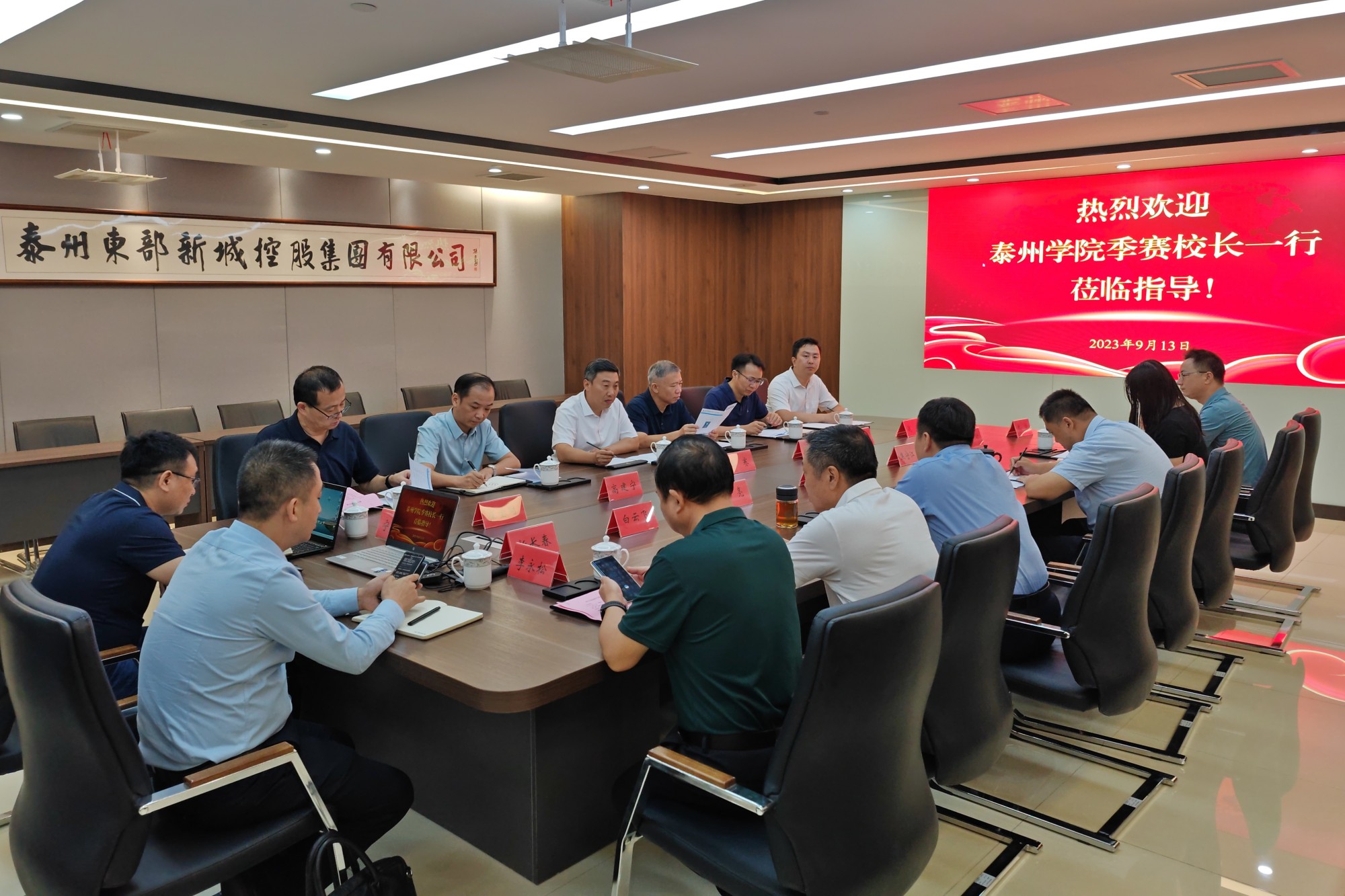 为贯彻落实学校“十四五”规划和第三次党代会精神,进一步深化政行企校合作,9月13日,校党委副书记、校长季赛,党委常委、副校长徐庆国,带领继续教育学院、信息化中心、信息工程学院赴泰州东部新城开发集团调研,就共同推动信息城建设,落实信息工程学院与泰州绿盟网络安全技术有限公司的产学研合作工作进行会商。东城集团董事长黄亮、总经理焦守江热情接待了季赛一行。