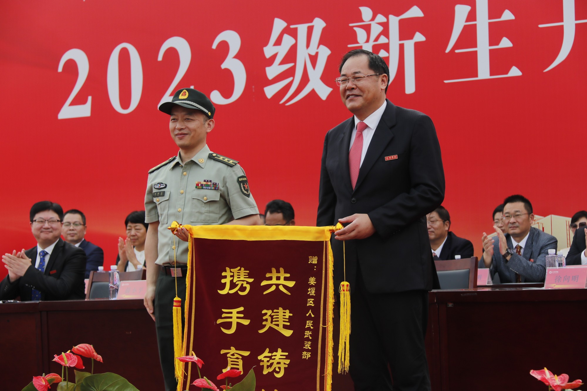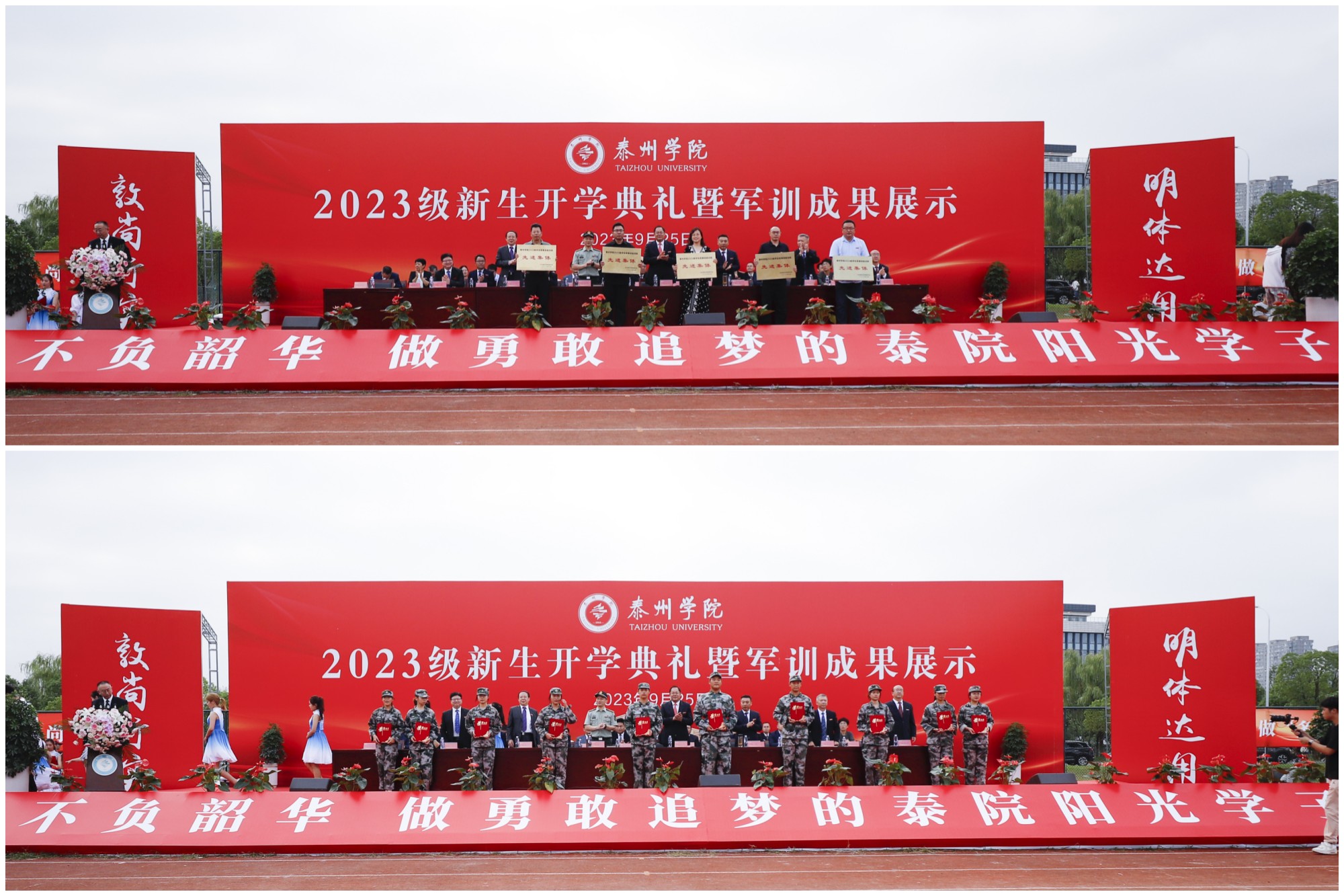 校党委常委、副校长徐庆国、薛小平分别宣读了《关于表彰2023级学生军训先进集体和先进个人的决定》《关于表彰2023年“优秀新生奖学金”获奖学生的决定》,全体校领导及嘉宾为先进集体和先进个人颁发了荣誉证书和奖章。