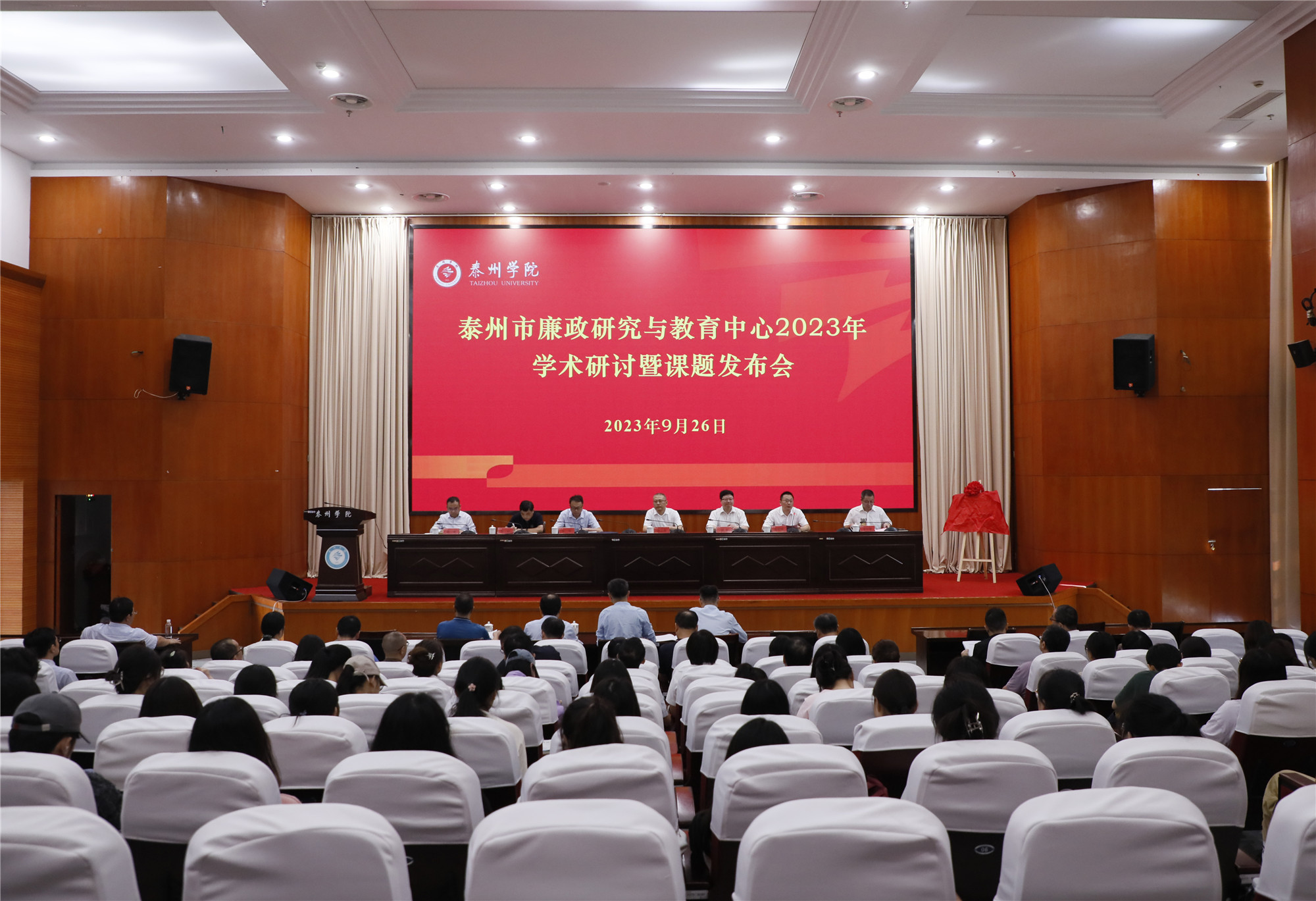 9月26日上午,泰州市廉政研究与教育中心2023年学术研讨暨课题发布会在米兰官网胡瑗讲堂隆重举行。泰州市相关单位代表、中心工作人员、兼职研究员及米兰官网专兼职纪检监察干部、特约监察员、师生代表出席了本次活动。
