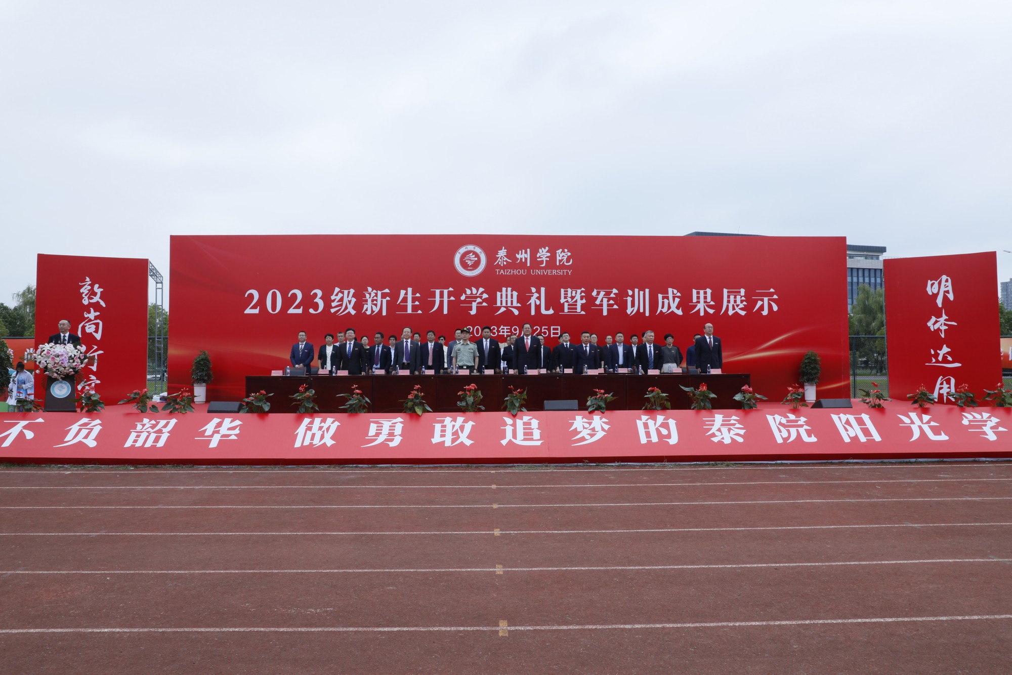 秋分时节,天清气朗,LETOU国际米兰官网校园内洋溢着蓬勃的青春活力。9月25日下午,在庄严的国歌声中,米兰官网2023级新生开学典礼暨军训成果展示大会在田径运动场隆重举行。全体在泰校领导,泰州市姜堰区人民武装部部长李苏华,学校职能部门负责人、各二级学院负责人,军训带训教官,全体新生班级辅导员、班主任和2023级新同学参加了大会。大会由校党委副书记、副校长王美林主持。