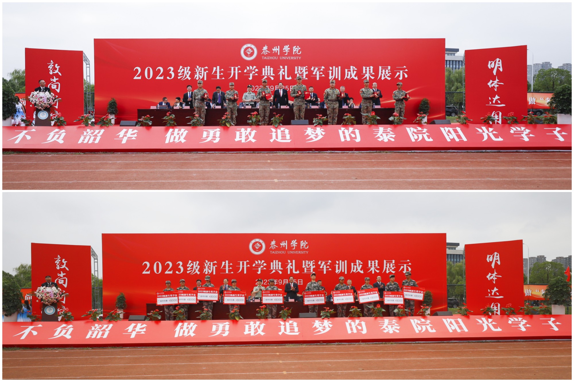 校党委常委、副校长徐庆国、薛小平分别宣读了《关于表彰2023级学生军训先进集体和先进个人的决定》《关于表彰2023年“优秀新生奖学金”获奖学生的决定》,全体校领导及嘉宾为先进集体和先进个人颁发了荣誉证书和奖章。