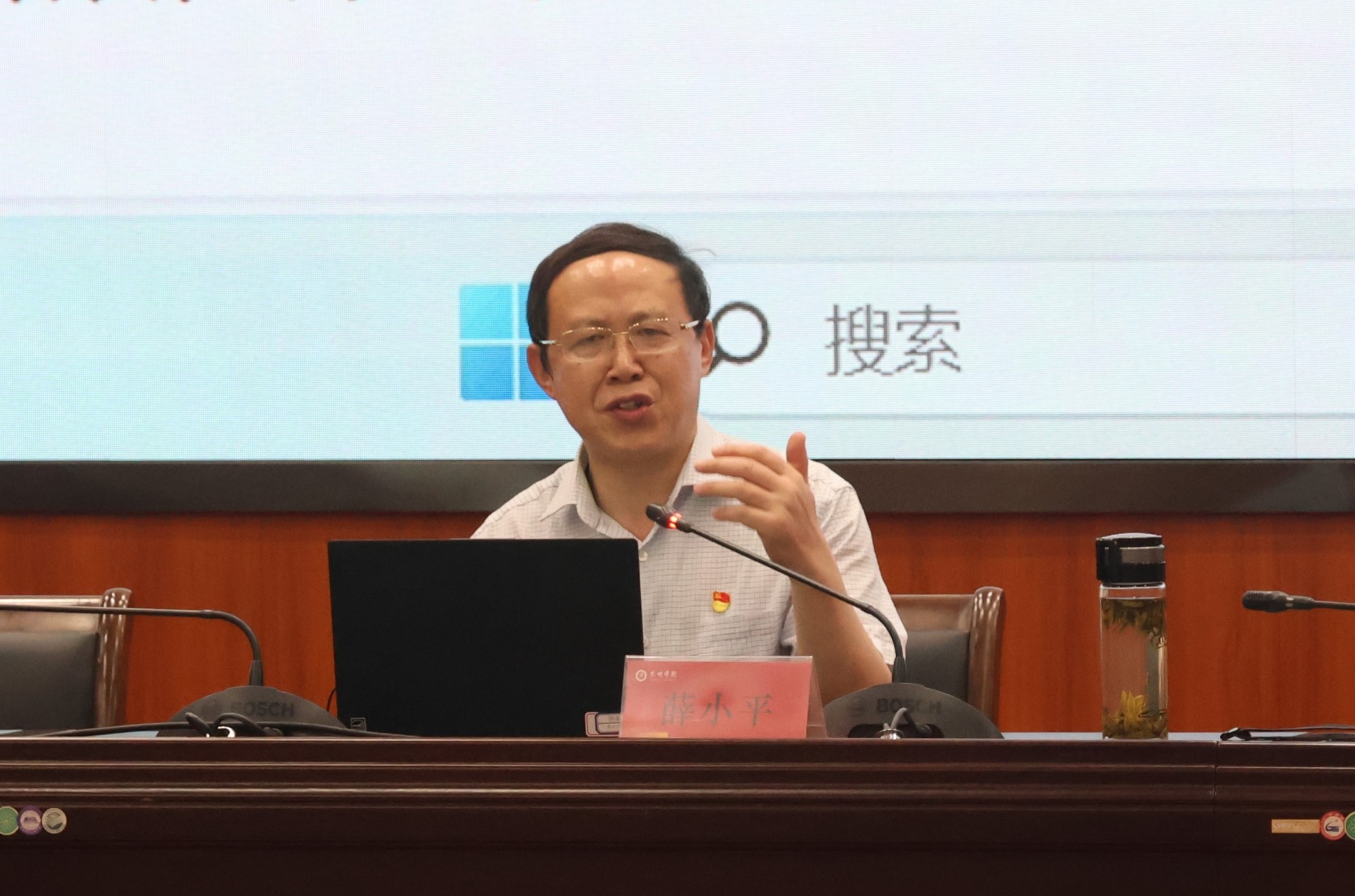 薛小平以《标准化建设 融合化发展 创新化提升——谈新时代高校基层党建工作》为题,系统阐释了高校党建工作的标准化、融合化和创新化。由党建内涵和意义出发,分析了党的组织体系、党支部地位,并以党支部为例解读基层党组织建设标准和基本任务,强调党支部书记政治素质要硬、抓党建本领要高、政策方法要懂、自身形象要好。