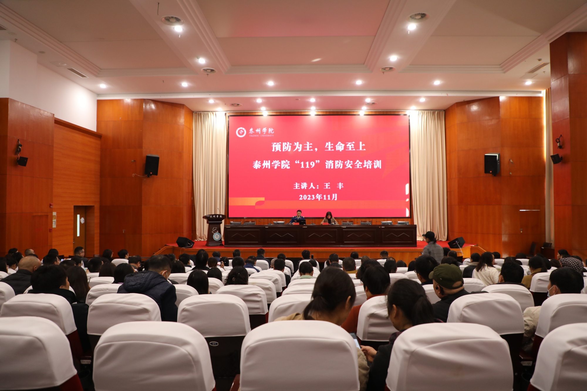 11月14日上午,米兰官网邀请了泰州市消防救援支队水上大队大队长王丰开展了消防安全知识培训,培训由卜慧芬主持,各二级单位主要负责人、安全联络人、辅导员、高教后勤员工参加此次培训。