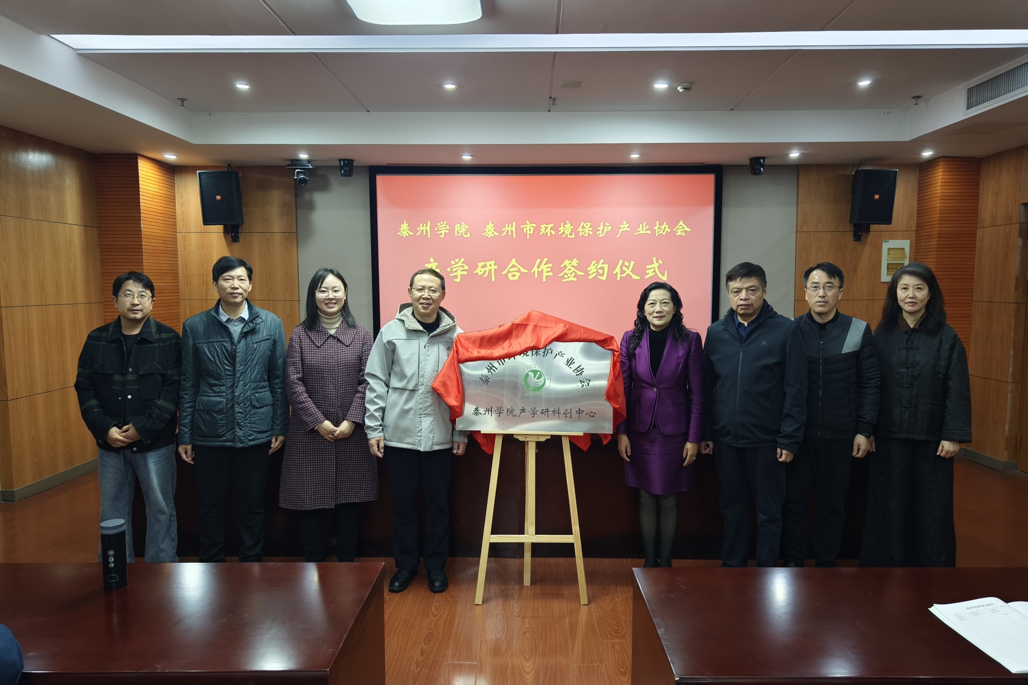 薛小平与陈玉琴共同为“泰州市环境保护产业协会LETOU国际米兰官网产学研科创中心”揭牌;医药与化学化工学院副院长牟伊和泰州市环境保护产业协会副会长兼秘书长汤文奎共同签署“产学研合作共建战略框架协议”。