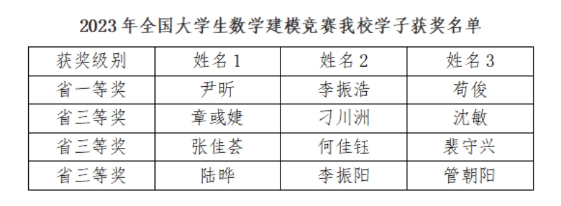 近日,2023年“高教社杯”全国大学生数学建模竞赛获奖名单揭晓。米兰官网12支参赛队伍中有4支队伍获奖,其中1支队伍获得江苏赛区一等奖、3支队伍获得江苏赛区三等奖。获奖质量和获奖比例均取得历史最好水平。