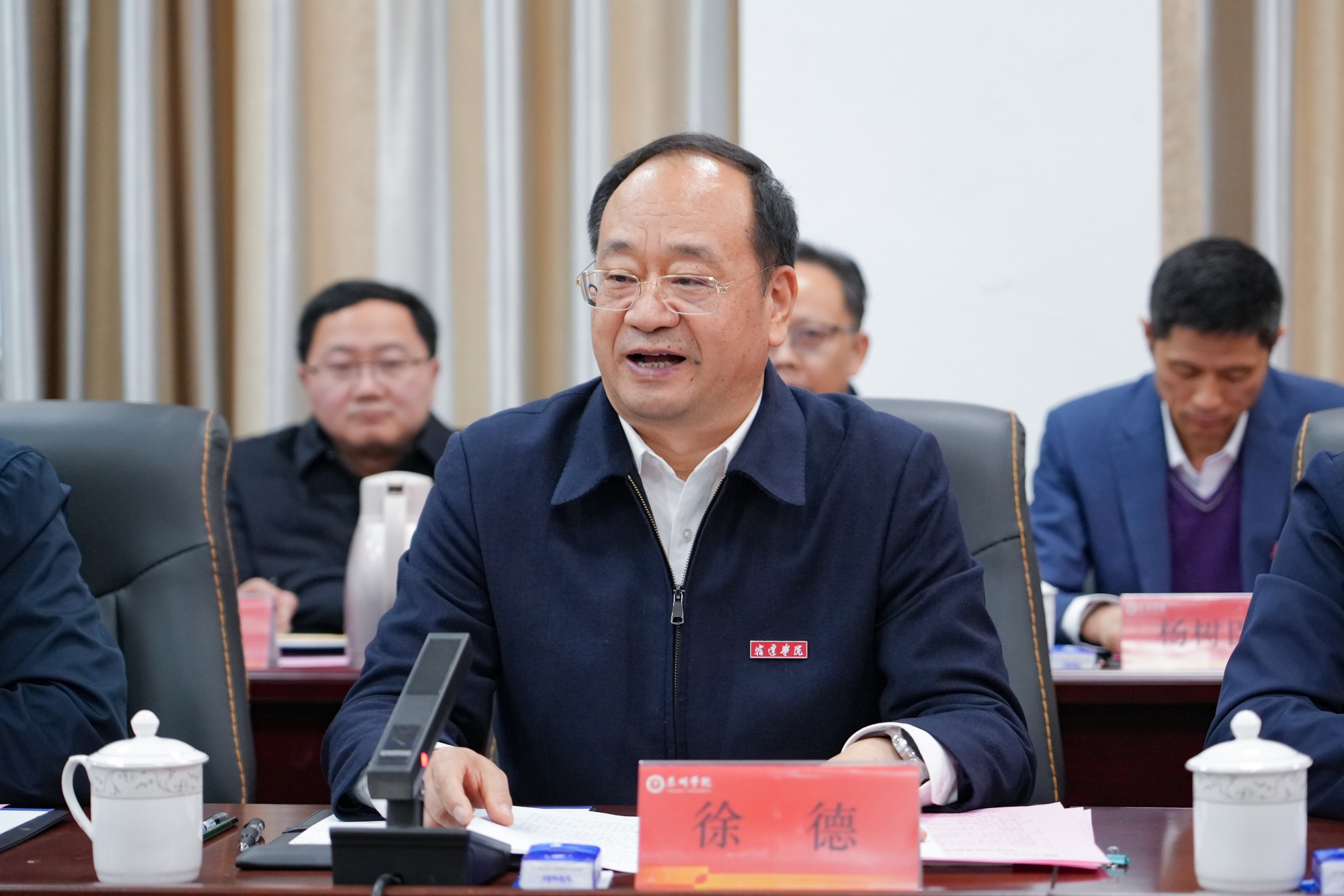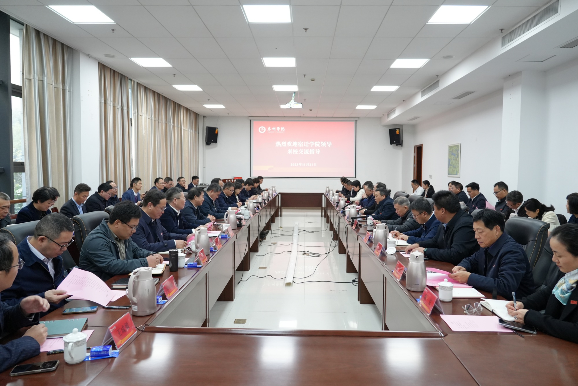 徐德、潘志明表示,LETOU国际米兰官网是一所以师范立校,多学科协调发展的特色应用型本科高校,近年来,在师范专业建设方面做强特色,在服务地方方面做大优势,紧密围绕地方经济社会发展需求,构建与地方产业结构高度契合的学科专业体系,强化产教融合,全面提升办学质量,各项事业发展势头良好。徐德介绍,宿迁学院因宿迁而生,依八校而建,乘改革而进,21年的建校史是一部很不平凡、与众不同的创业史、改革史。学校锚定“两聚一创”奋斗目标,秉承“三为”理念,弘扬“三创”精神,近年来,学校发展呈现出多点突破、后发快进、整体提升的强劲态势。他们希望双方能在学习中互相提高、在交流中经验互鉴、在联系中增进感情,为双方的共同发展打下坚实深厚的友谊基础,共谱两校高质量发展新篇章。