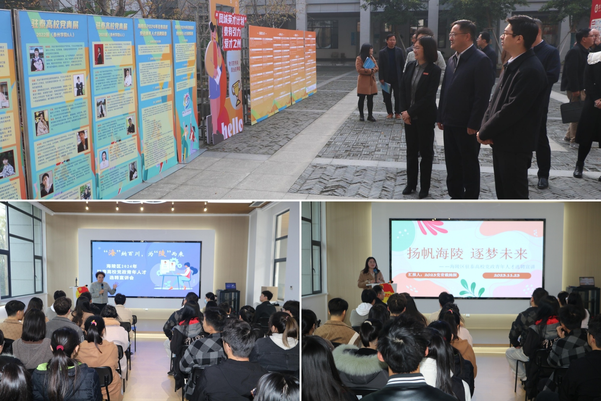 为积极响应泰州市委关于青年人才“青春留泰”的工作部署,深化泰州市青年和人才友好型城市建设,11月23日,海陵区委、区政府在米兰官网举办鼓励驻泰高校毕业生“扬帆海陵”系列活动。校党委常委、副校长卜慧芬,海陵区政府副区长曹锦明,共青团泰州市委副书记孙珏,泰州市劳动就业管理中心副主任陈海泉,中共泰州市海陵区委人才工作局局长陈钰,共青团泰州市海陵区委书记秦晓东,泰州市海陵区人力资源和社会保障局副局长吴宏图,泰州海纳汇智人才科创集团董事长李军丽出席活动。驻泰各高校团委书记、就业工作负责人、“扬帆海陵”奖学金获奖学生代表,驻泰高校创业协会学生代表、米兰官网2024届部分毕业生等参加活动。