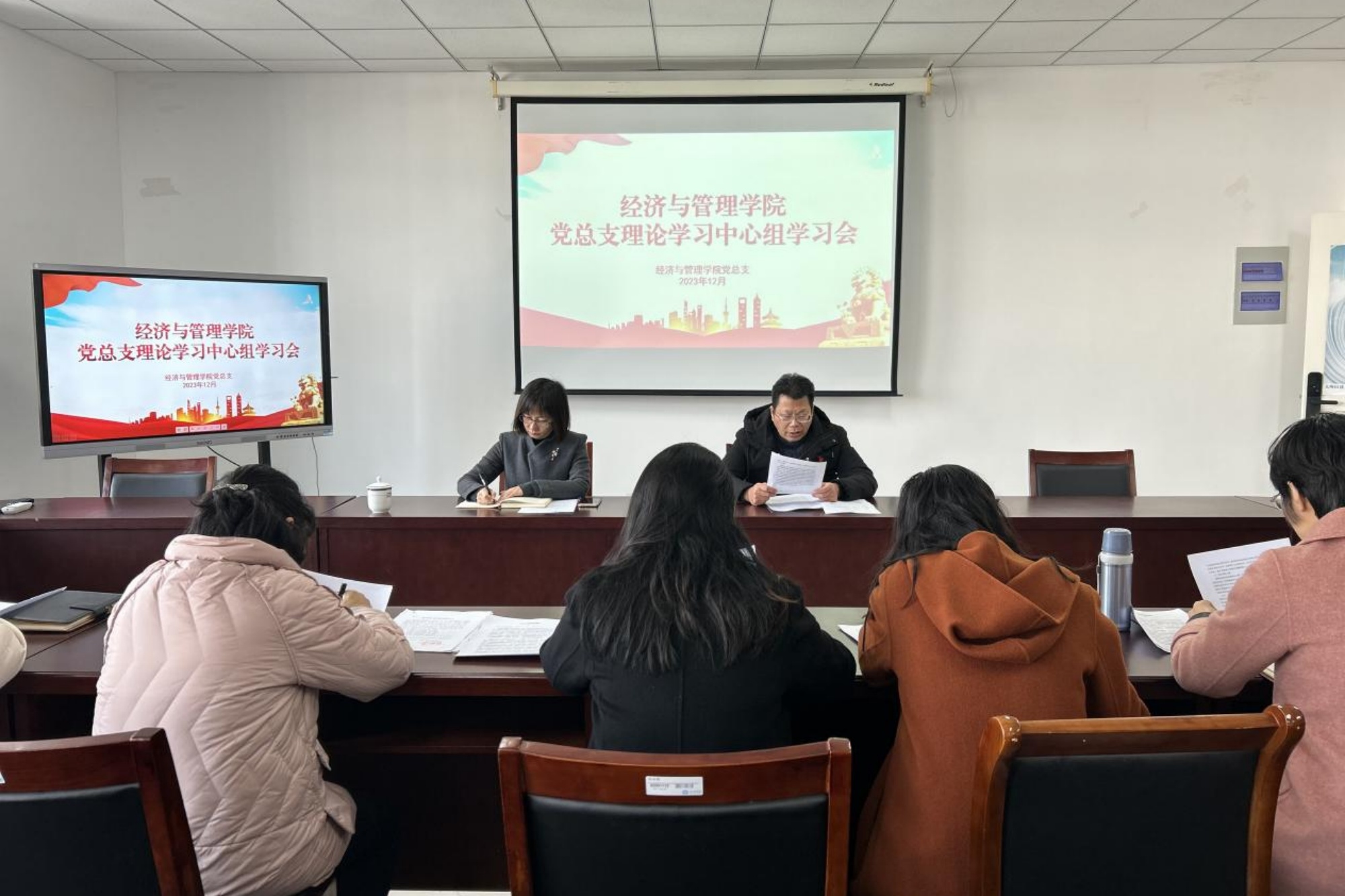 12月6日上午,经济与管理学院党总支理论学习中心组组织集中学习,校党委常委、副校长卜慧芬到会巡学旁听。会议由党总支书记刘荣江主持。