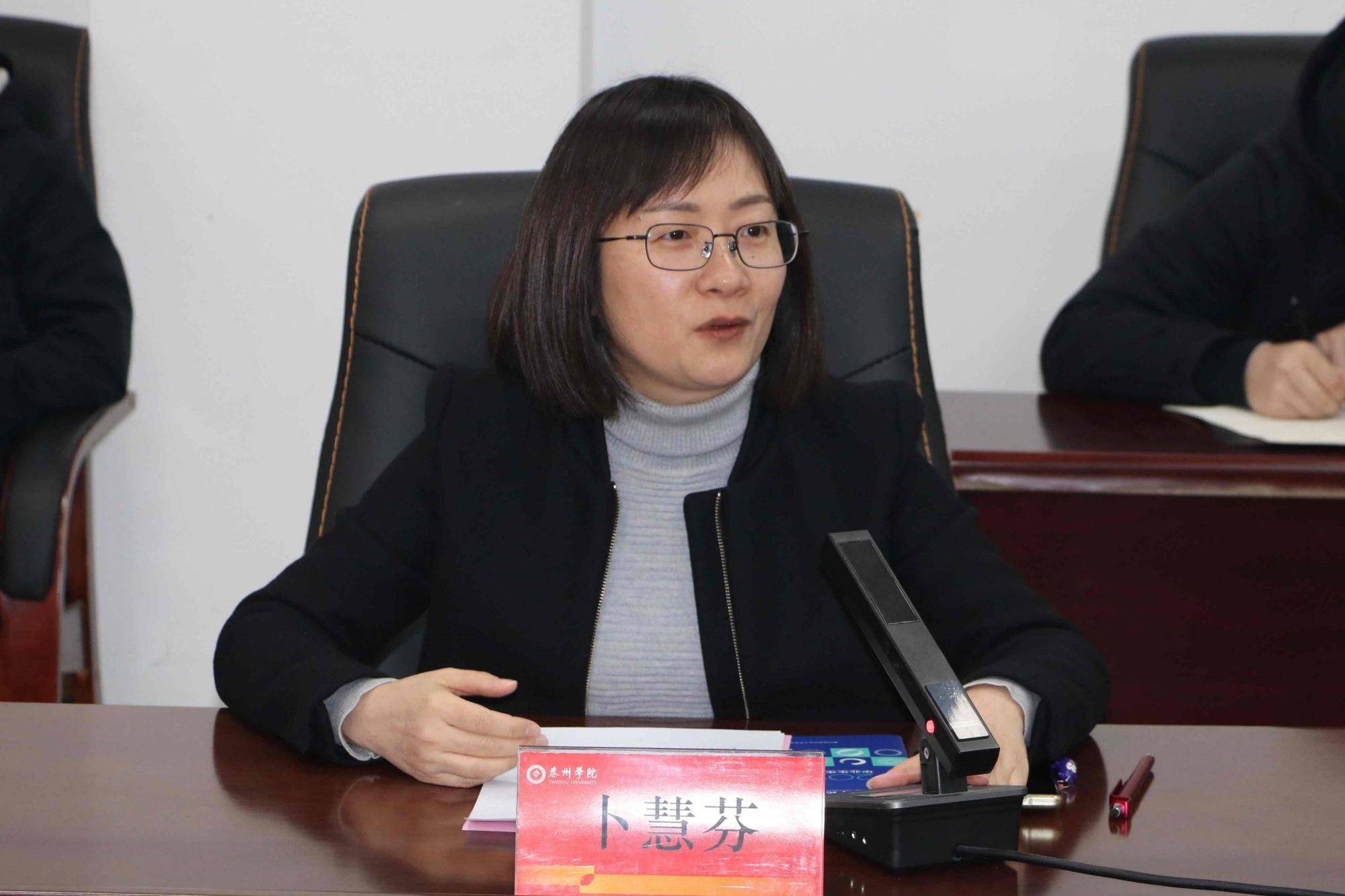 卜慧芬向句容市人社局相关领导介绍了生源情况、学校历史、学院设置和事业发展情况。她希望这次交流能进一步加强双方在就业创业实践基地建设、毕业生高质量充分就业等方面的合作。