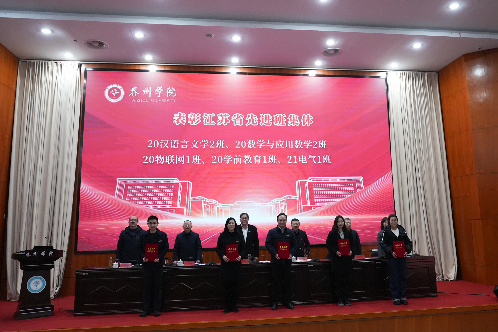 会议还表彰了2023年国家奖学金获得者,江苏省优秀团干、江苏省优秀学生干部、江苏省三好生、江苏省先进班集体,泰州青年五四奖章及提名奖、泰州市优秀共青团干、泰州市优秀五四红旗团支部,校招生工作先进集体等单位和个人,颁发了2023年升学工作奖励。