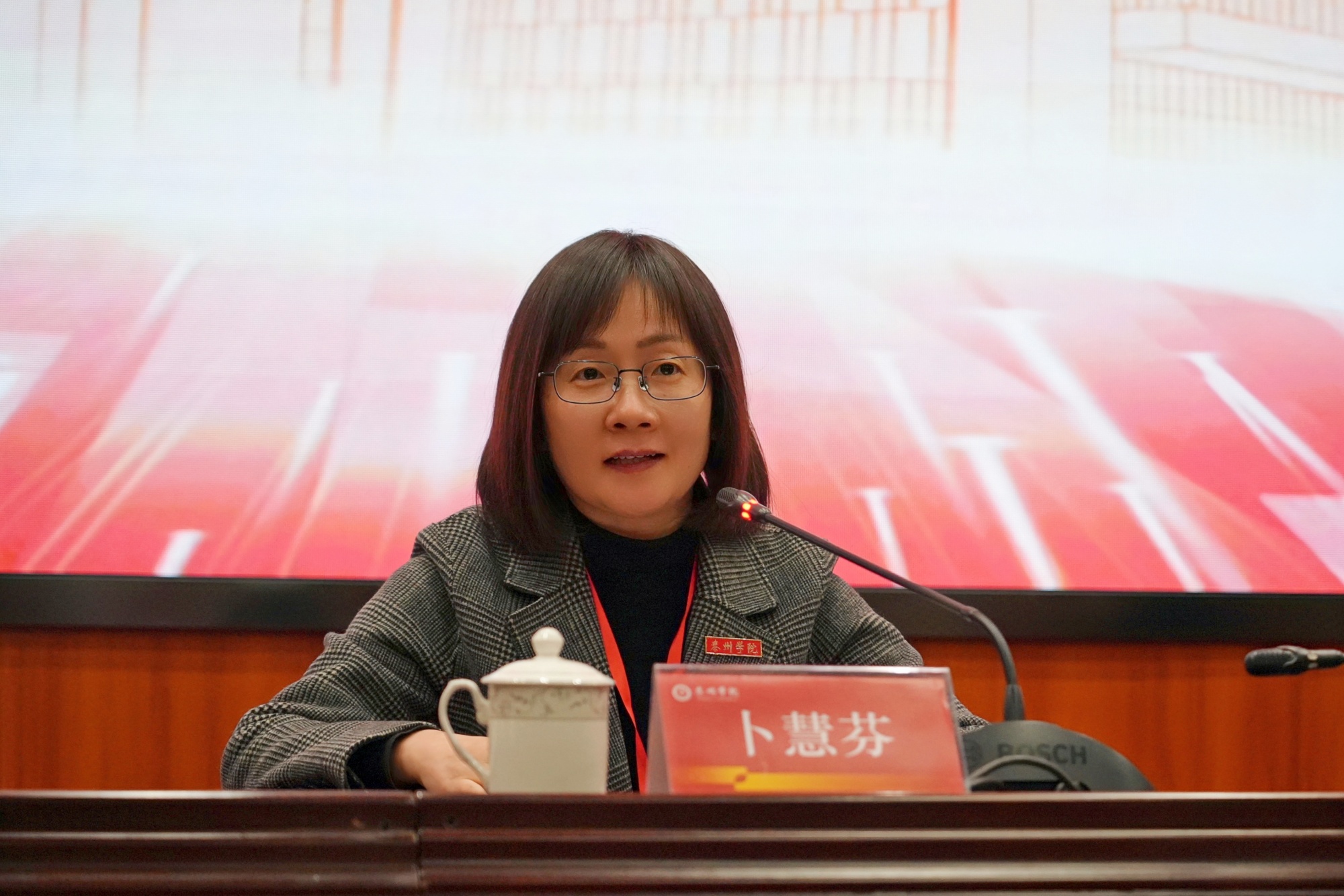 卜慧芬以《让青春在新时代绽放绚丽之花》为题发表讲话。她充分肯定了校第四次学生代表大会召开以来,各级学生会组织团结带领广大同学围绕中心、服务大局,在思想政治引领、学风建设、社会实践服务等方面取得的成绩。她对同学们提出三点希望:一是要坚定理想信念,铸牢对党忠诚的思想根基,做新时代的有志青年;二是要点燃学习热情,接续青春远航的发展动力,做新时代的有识青年;三是要甘于吃苦奉献,擦亮砥砺奋斗的青春底色,做新时代的有为青年。