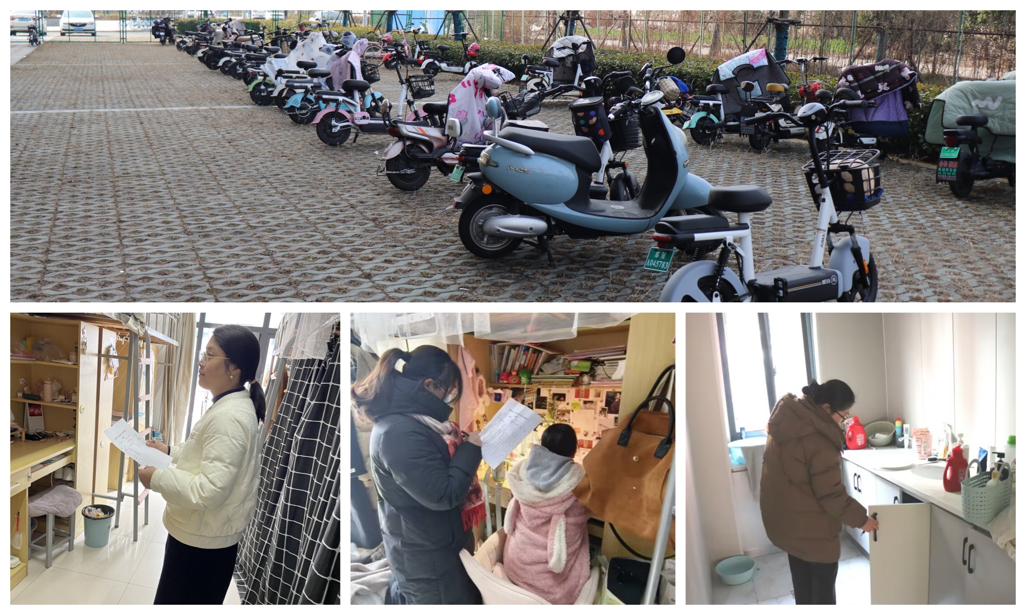 检查组对全校学生公寓的架空层、大厅、楼道和宿舍内部逐一排查,检查电动车停放和充电情况以及学生宿舍内电器使用情况。针对检查过程中发现的问题,检查组第一时间向相关学院进行反馈,责令立即整改,并下发《学生公寓火灾隐患整改通知书》,确保整改及时、落实到位。