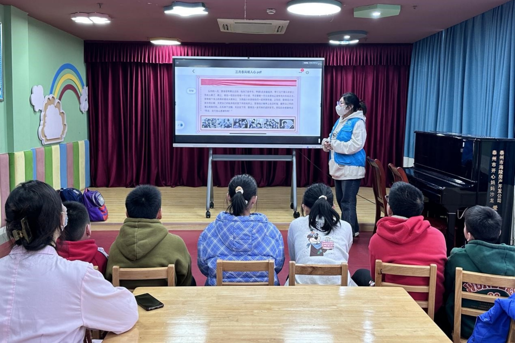 泰州市社会福利中心作为音乐学院的阳光志愿者服务站,每周都会有志愿者为孩子们辅导功课,带领孩子们唱歌、做手工、做游戏。志愿者发挥自身特长,将美育融入志愿服务全过程,让孩子们真听、真看、真感受,以引导、激励的方式润物细无声地帮助学生树立正确的审美观、人生观和价值观,助力孩子们从更广阔的视角理解音乐,提升学生的综合素养。
