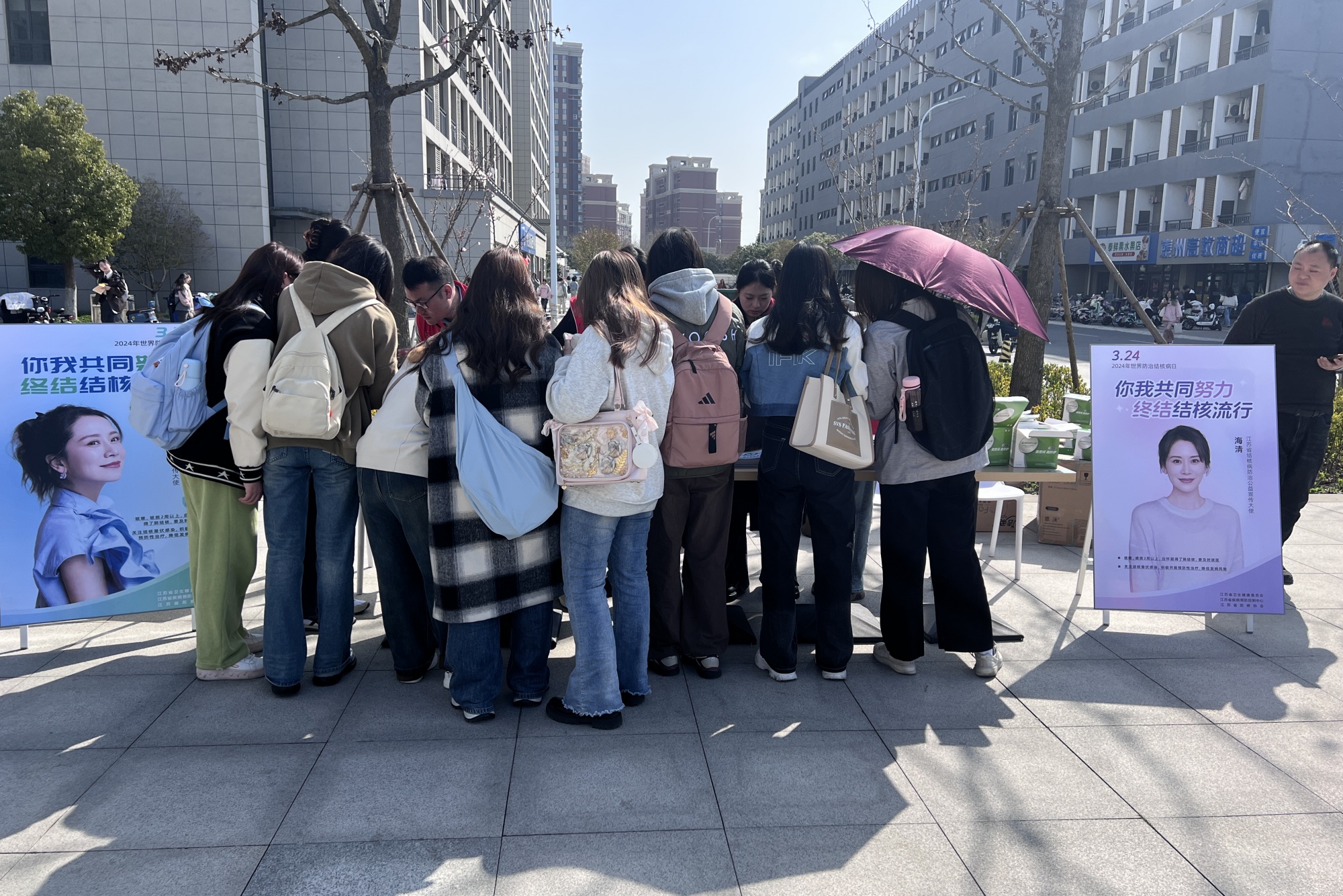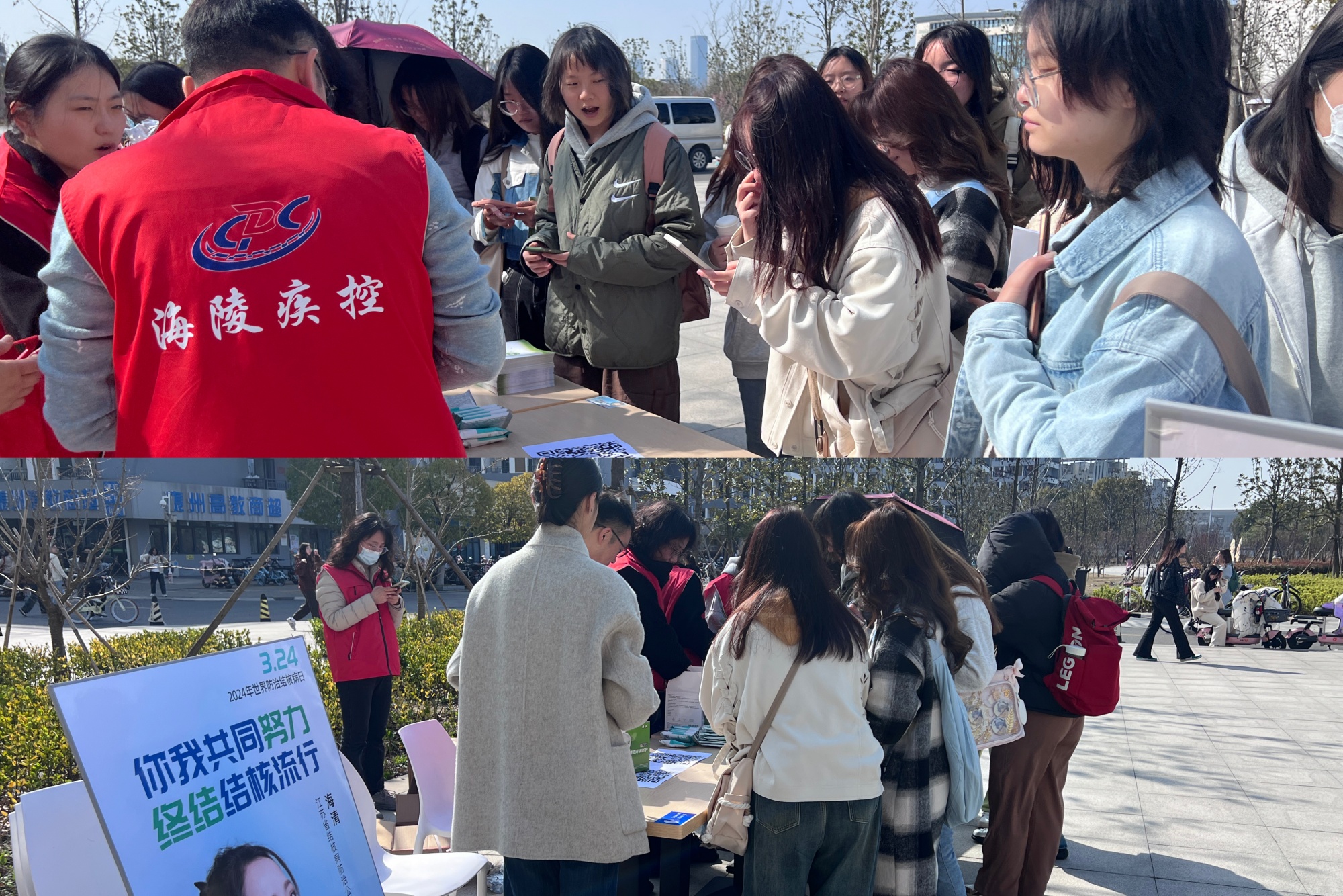 在第29个世界防治结核病日到来之际,3月22日上午,米兰官网联合泰州市海陵区疾控中心在学生食堂广场开展“你我共同努力 终结结核流行”宣传教育活动,数百名同学参加。
