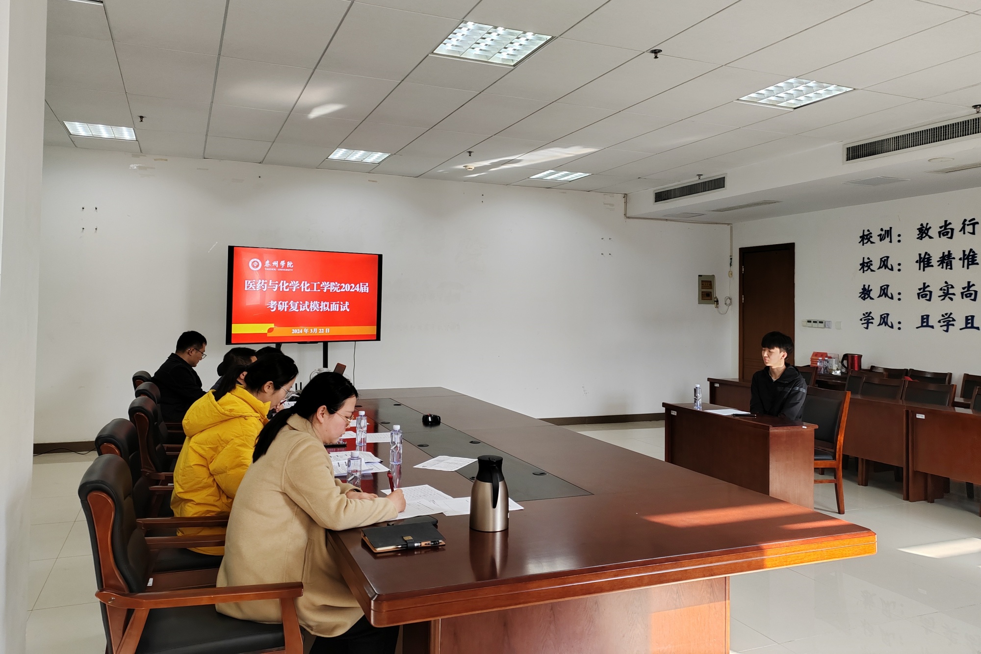 为提升考研过线学生面试竞争力,3月22日下午,医药与化学化工学院在行政楼D2201会议室举办了2024届考研复试模拟面试会,面试考官由学院助研导师团队代表担任。