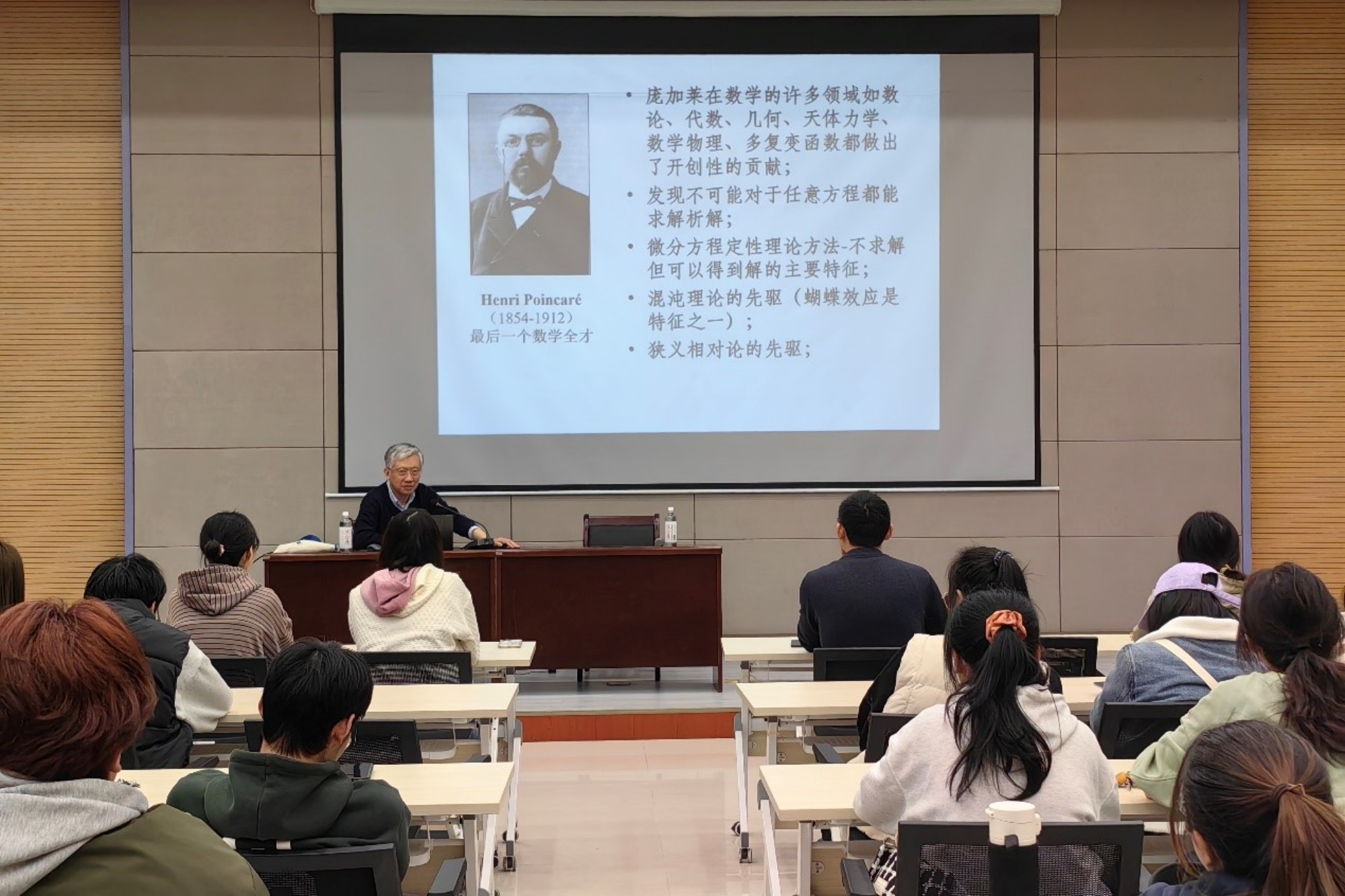 3月29日下午,江苏省数学学会理事长、原南京大学副校长程崇庆教授应邀在图书馆胡瑗讲堂给数理学院一年级学生作报告。报告由数理学院副院长王志华主持。
