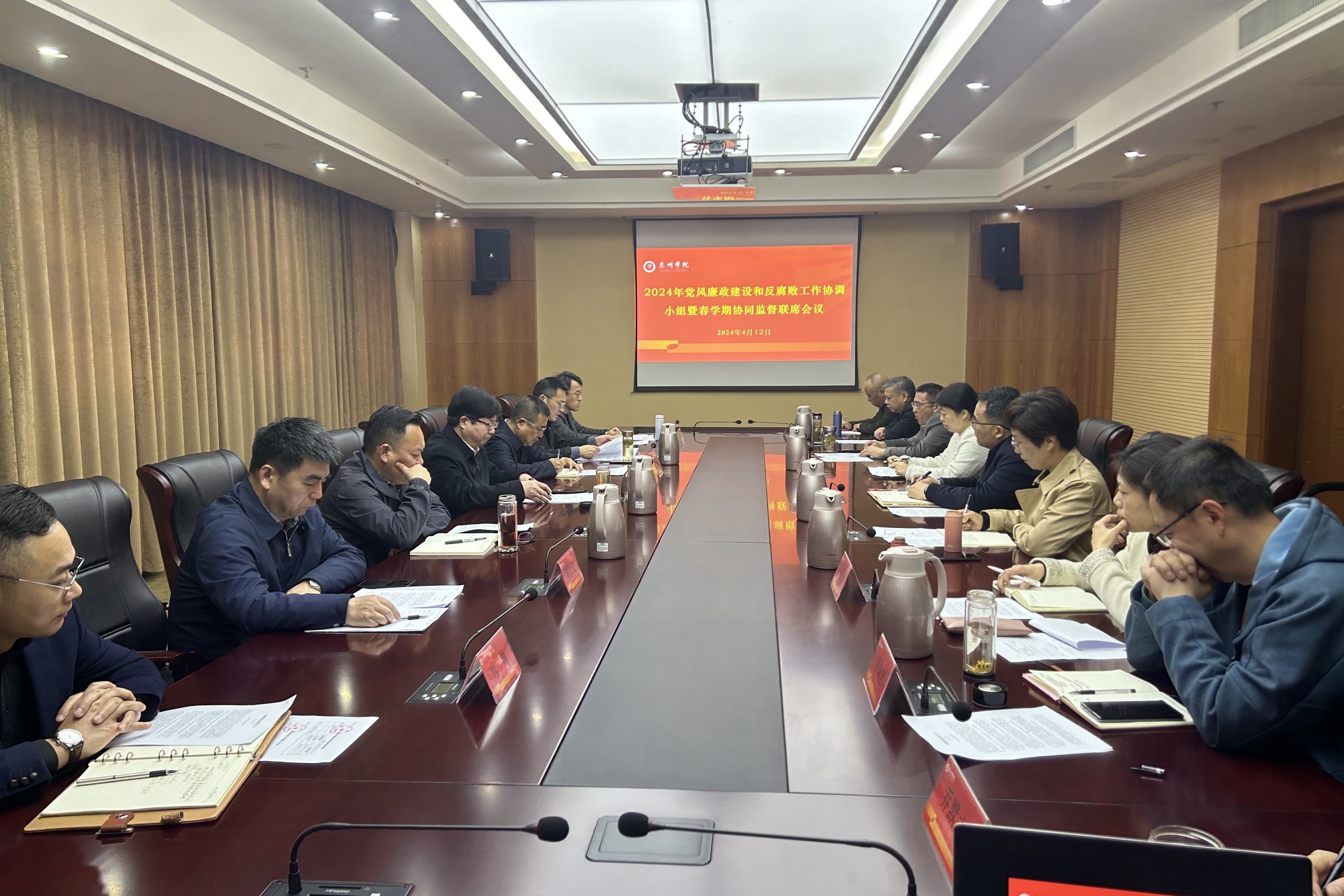 4月12日上午,米兰官网召开2024年党风廉政建设和反腐败工作协调小组暨春学期协同监督联席会议。校党委常委、纪委书记、派驻监察专员何军主持会议并讲话。校党委常委、组织部部长吉泰根,校党委常委、宣传部部长魏小星出席会议。党校办、人事处、财务处等9家联席会议成员单位主要负责人参加会议,教务处、学工处、后勤处主要负责人列席会议。