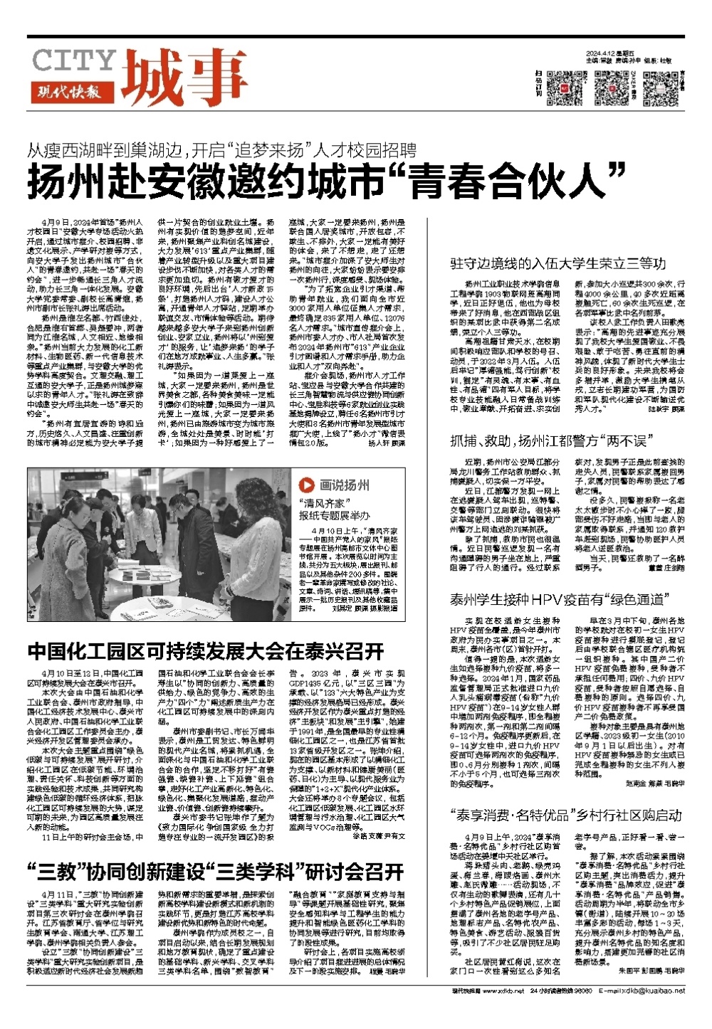 2024年4月12日,《现代快报》第C8版城事报道在米兰官网召开的“三教”协同创新建设“三类学科”重大研究实验创新项目第三次研讨会,报道链接:http://dz.xdkb.net/html/2024-04/12/node_72.htm