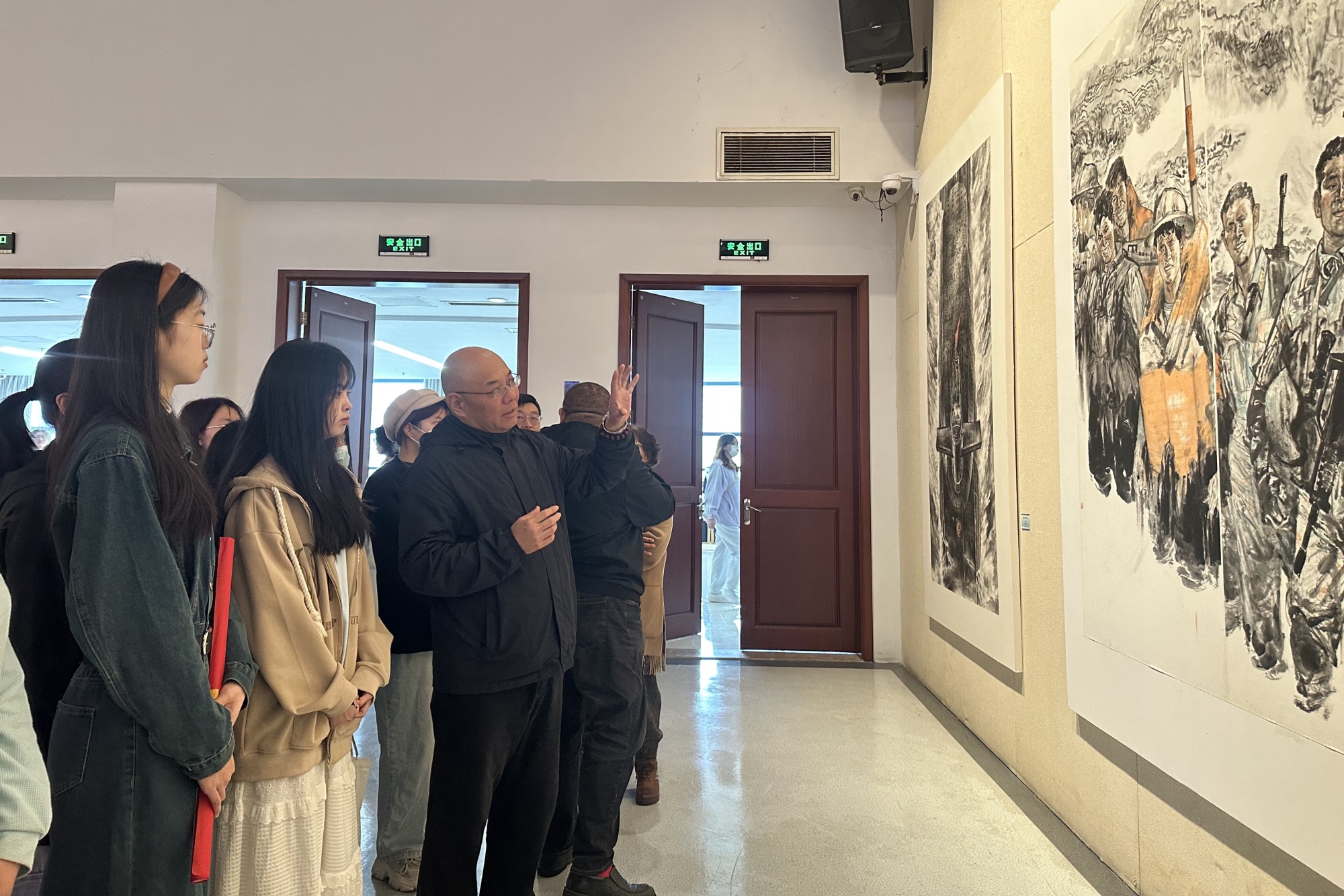 为庆祝中国人民解放军海军成立75周年,4月14日,由海军政治工作部宣传文化中心和中共泰州市委宣传部联合主办的“万里海疆画展”在市美术馆举行。美术学院组织50余名学生在袁俊华教授带领下赴现场进行美育大讲堂。