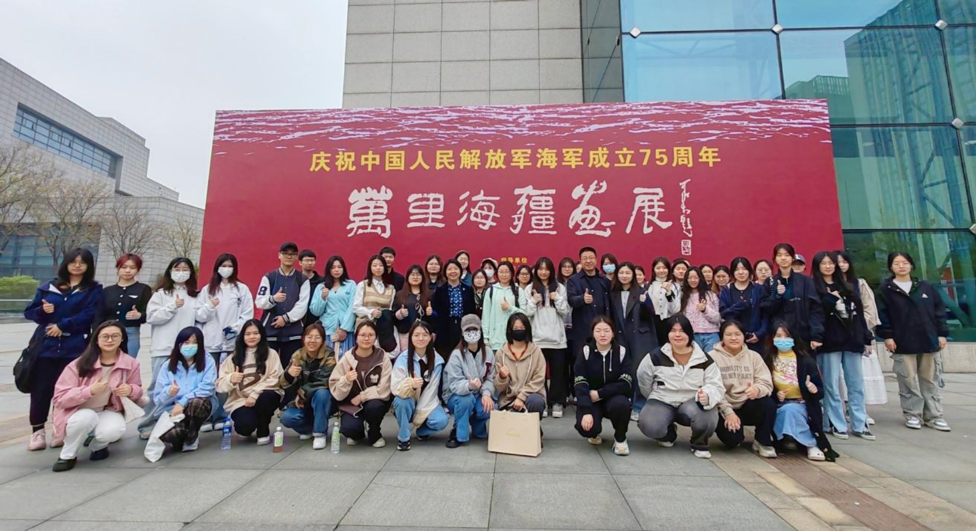 辅导员金韵在接受媒体采访时谈到,今年是中国人民解放军海军成立75周年,在海军诞生地举办这么一个展览有着特别的意义。本次美育大讲堂融进“万里海疆画展”是一次拓宽知识视野的专业教育课,更是一节融入海军文化的国防教育课,同学们深刻感受到人民海军从刚刚建立到逐渐强大的全过程,切实提升了大家的国防意识和爱国情怀。