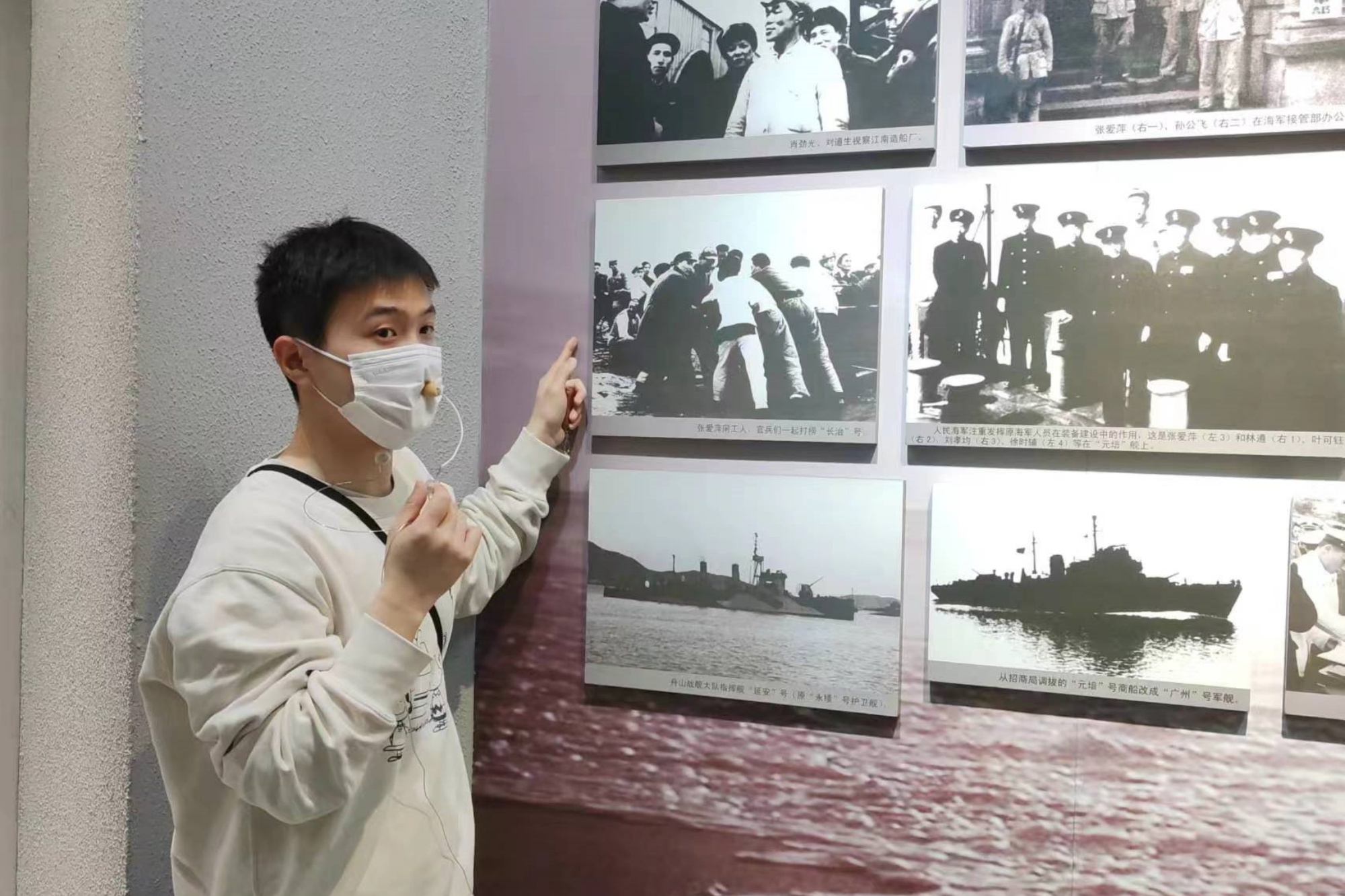 活动伊始,大家首先参观了人民海军诞生地(三野渡江战役东线指挥部)旧址和人民海军主题展馆,学习认识轰炸机、歼击机、直升机等海军退役装备,了解海军服装特点,并通过VR虚拟现实技术体验了人民解放军海军乘风破浪、勇立潮头的真实感受。随后,纪念馆讲解员王蔚境通过以“情”入“景”的方式向同学们讲述了第一支海军部队——华东军区海军诞生的故事,开展了一堂生动形象的梦想公开课。
