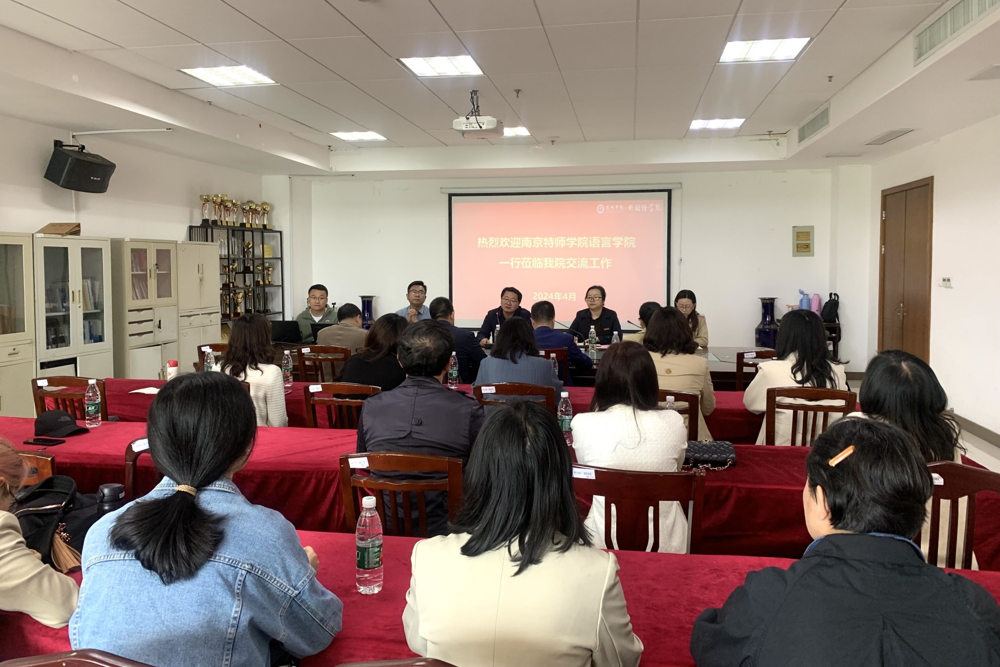 4月20日上午,南京特殊教育师范学院语言学院党总支书记丁祖保、执行院长王东一行21人来米兰官网LETOU国际米兰官网访问交流。LETOU国际米兰官网院长李更春、党总支副书记马永明、副院长周侠等参加此次交流。