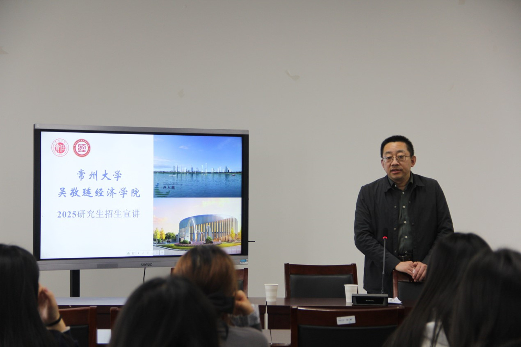 为进一步推动2025届学生考研升学工作,4月19日下午,经济与管理学院在G2502邀请常州大学吴敬琏经济学院院长姜国刚就应用经济学和国际商务硕士点招生举办线下推介会。会议由经济与管理学院院长朱军主持。