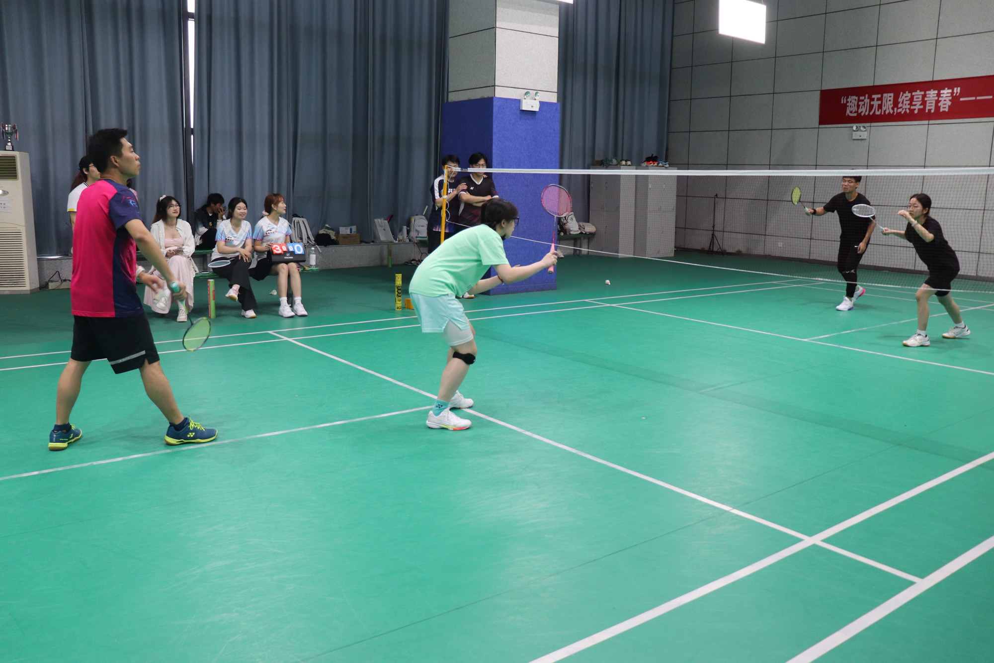 比赛共设男子单打、女子单打、混合双打三个项目,每场比赛都紧张激烈,扣人心弦。选手们身着运动装,手持羽毛球拍,或轻盈跳跃,或迅猛扣杀,让人目不暇接,不仅展现了高超的球技,更展现出了坚韧不拔的精神风貌。经过预赛、半决赛、决赛的激烈角逐,共产生男子单打、女子单打、混合双打一、二、三等奖共九项奖项。校教务处、学生工作处部门负责人观看决赛并为获奖选手颁发证书。