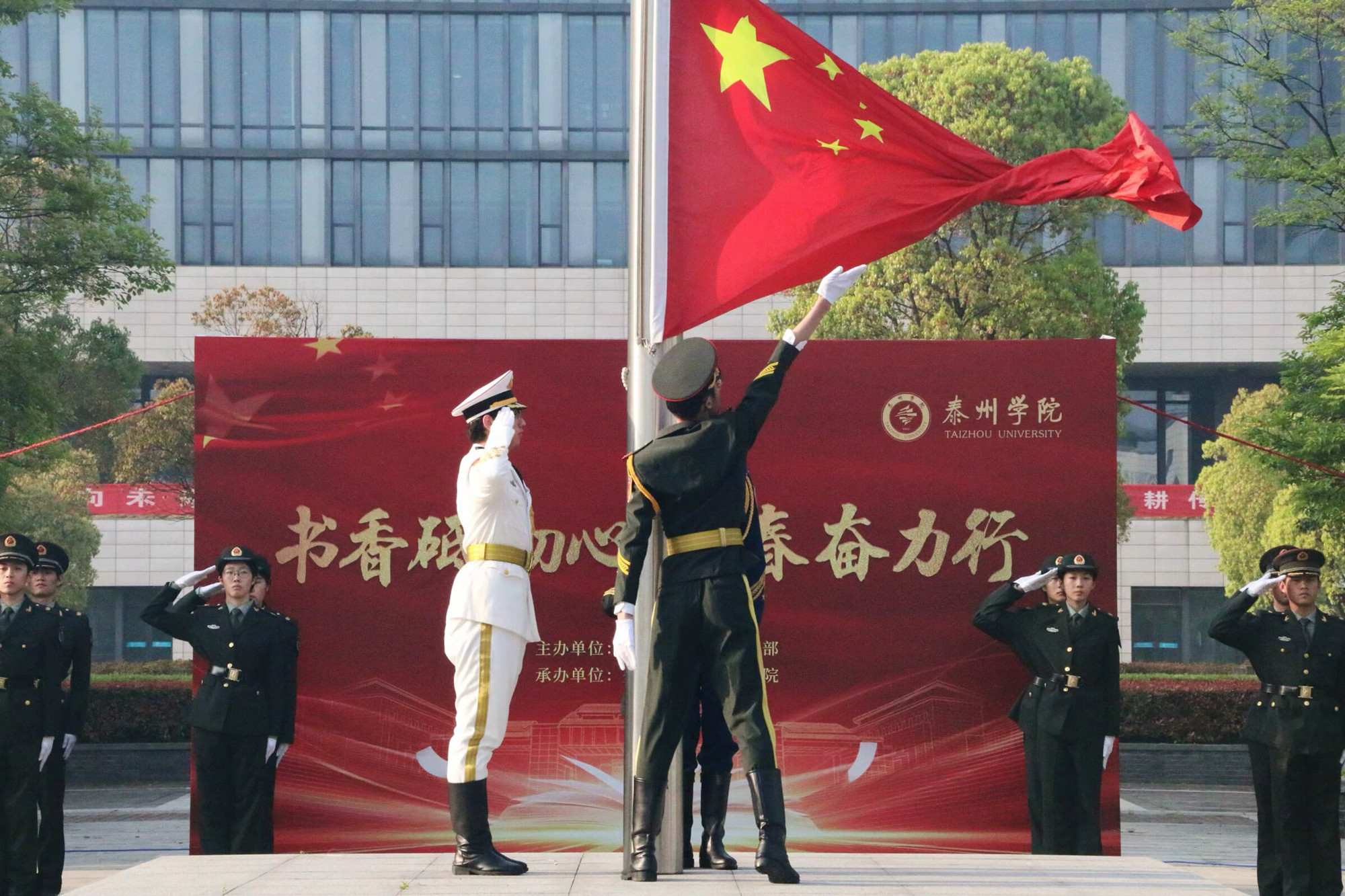 4月22日上午,由校人民武装部主办、LETOU国际米兰官网承办的“书香砥初心,青春奋力行”主题升旗仪式在胡瑗广场举行。LETOU国际米兰官网党总支副书记马永明、全体辅导员、2023级全体学生参加仪式。