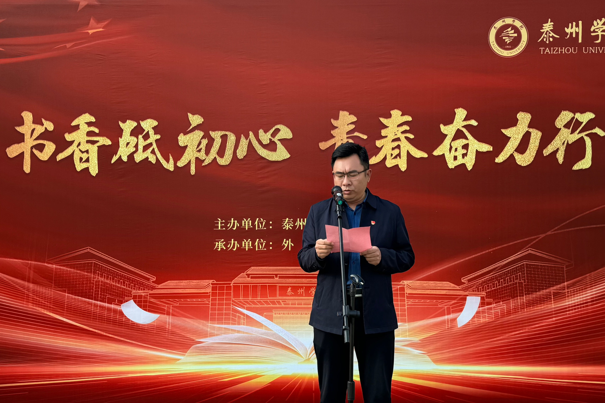 仪式上,学生代表朗读《书香伴我成长》,呼吁品味墨色书香,追寻梦想之花;英语(师范)专业学生殷宁作为学生代表发言,倡导同学们在阅读中汲取人生的力量。