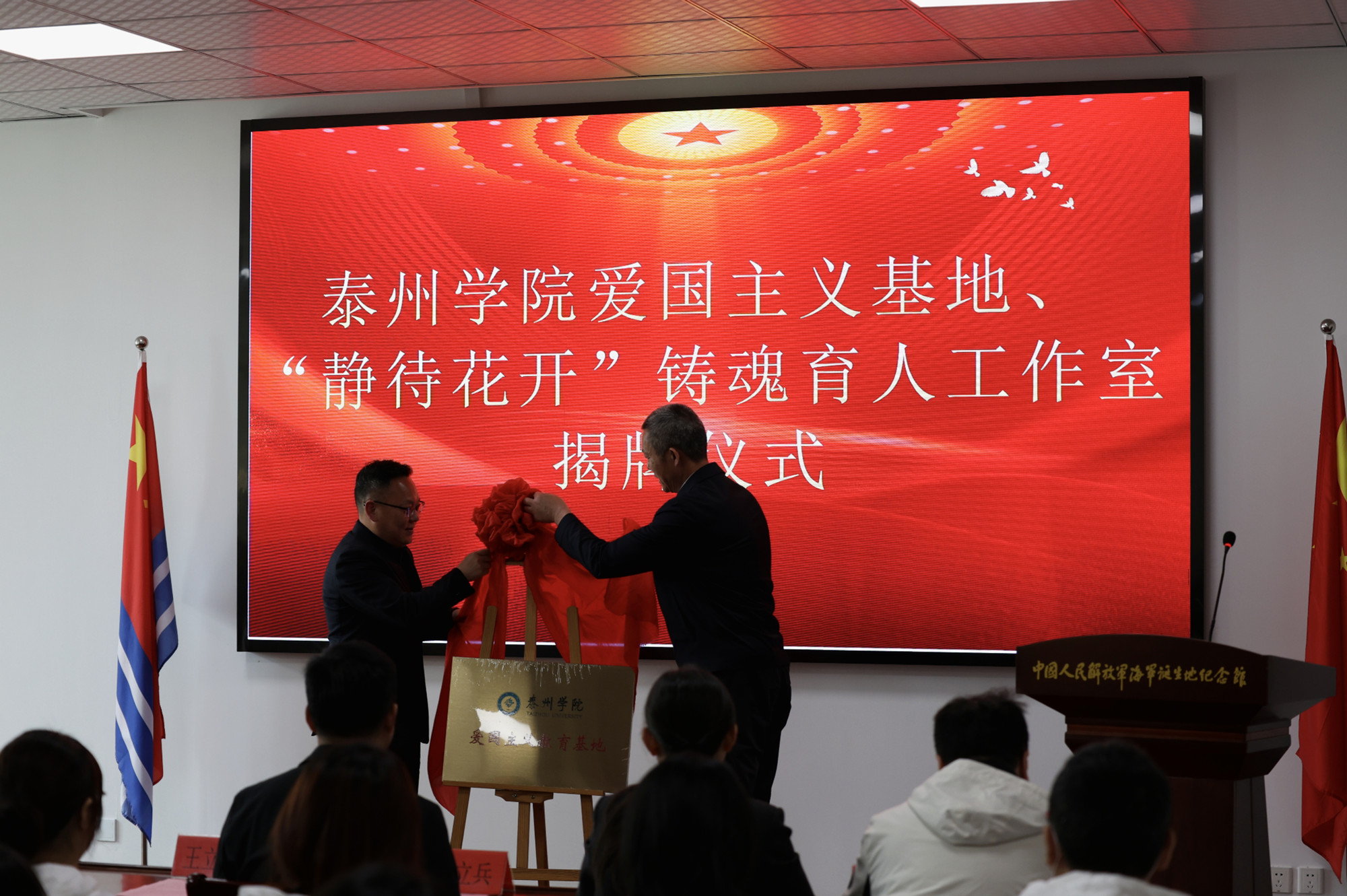 为庆祝中国人民解放军海军成立75周年,传承海军精神,强化国防意识,4月22日上午,米兰官网联合泰州海军诞生地纪念馆举行“强化国防意识,拥军强我国防”主题活动。校党委常委、副校长卜慧芬,党委常委、宣传部部长魏小星,泰州市文化广电和旅游局副局长王立新,泰州海军诞生地纪念馆馆长乔立兵、副馆长王明哲和学校师生代表一同参加活动。